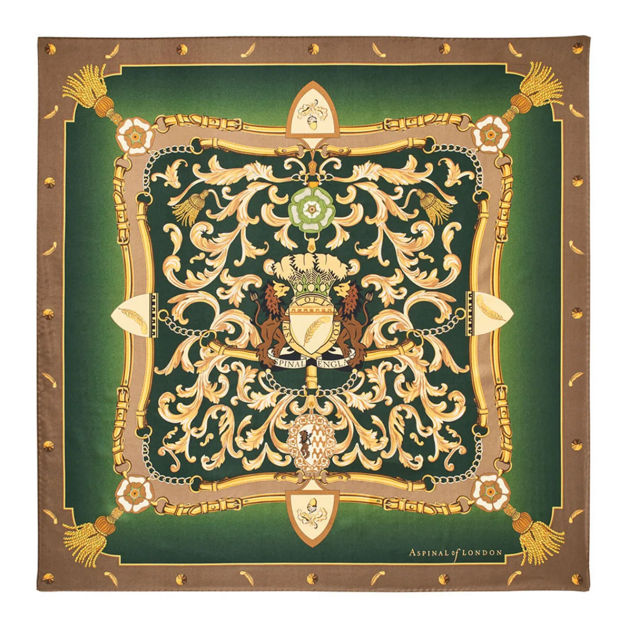 - Handcrafted, square-shaped, signature shield design, finely rolled hand-stitched edges, lightweight, smooth finish