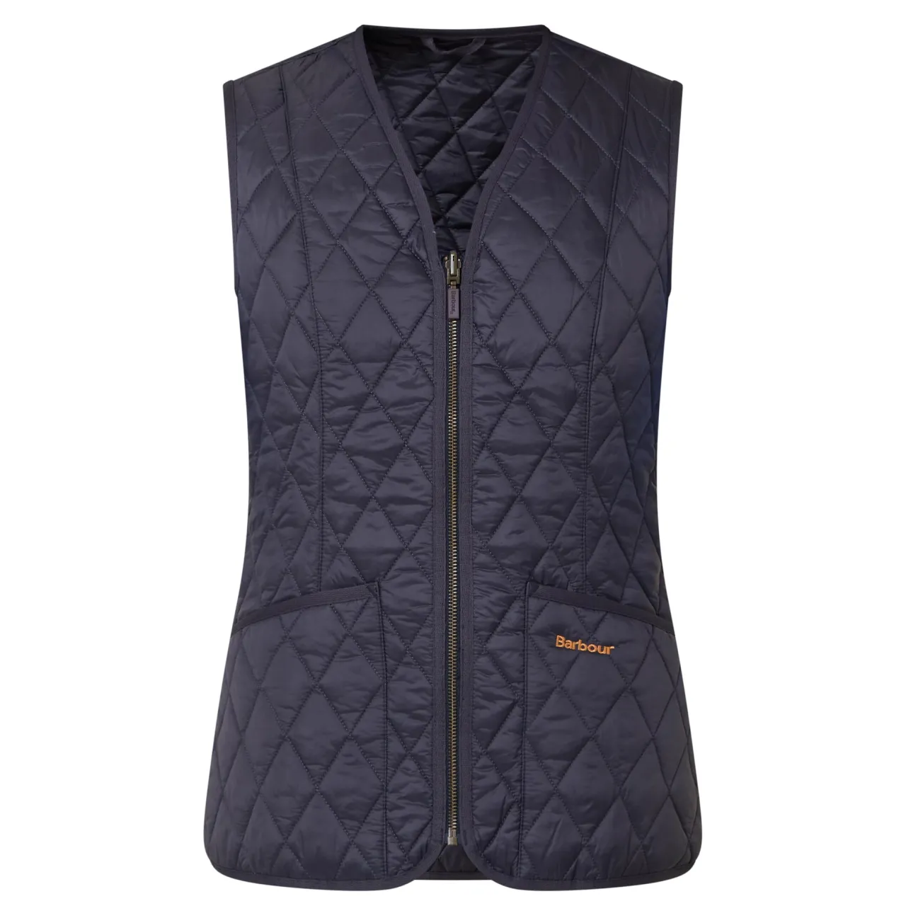 - Sleeveless, zip fastening, grosgrain trim, patch pockets, logo embroidery on pocket, diamond quilting
