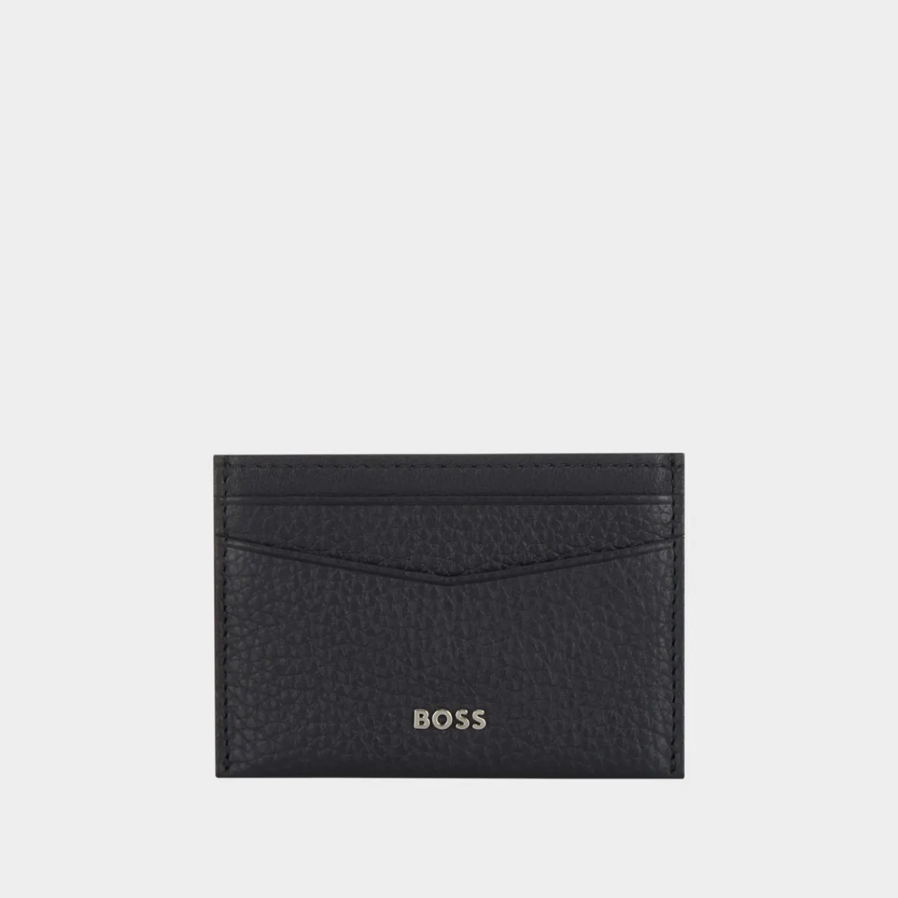 - Four card slots, logo lettering, tonal stitching, grained leather finish