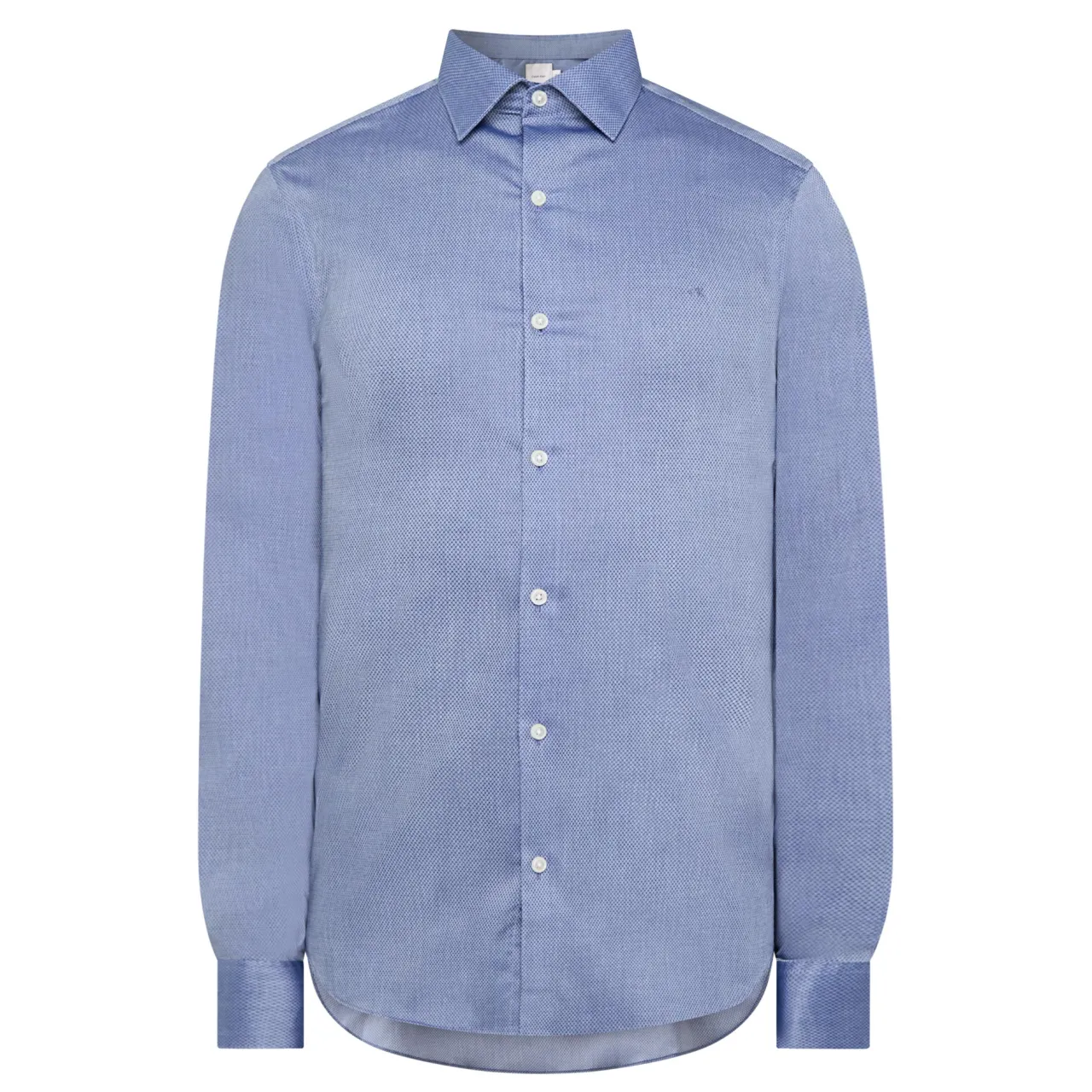 - Long sleeves, pointed collar, button fastening placket, CK logo embroidery, single-button cuffs, tonal stitching, curved hemline, smooth fabric