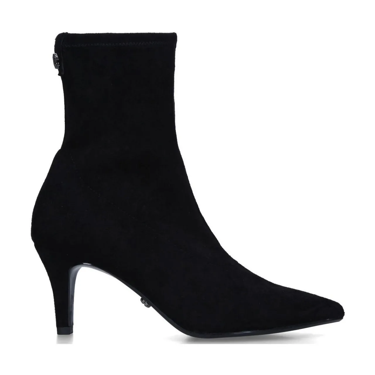 - Fluted stiletto heel, pointed toe, sock style, ankle height, inner zip fastening, logo initial detail.