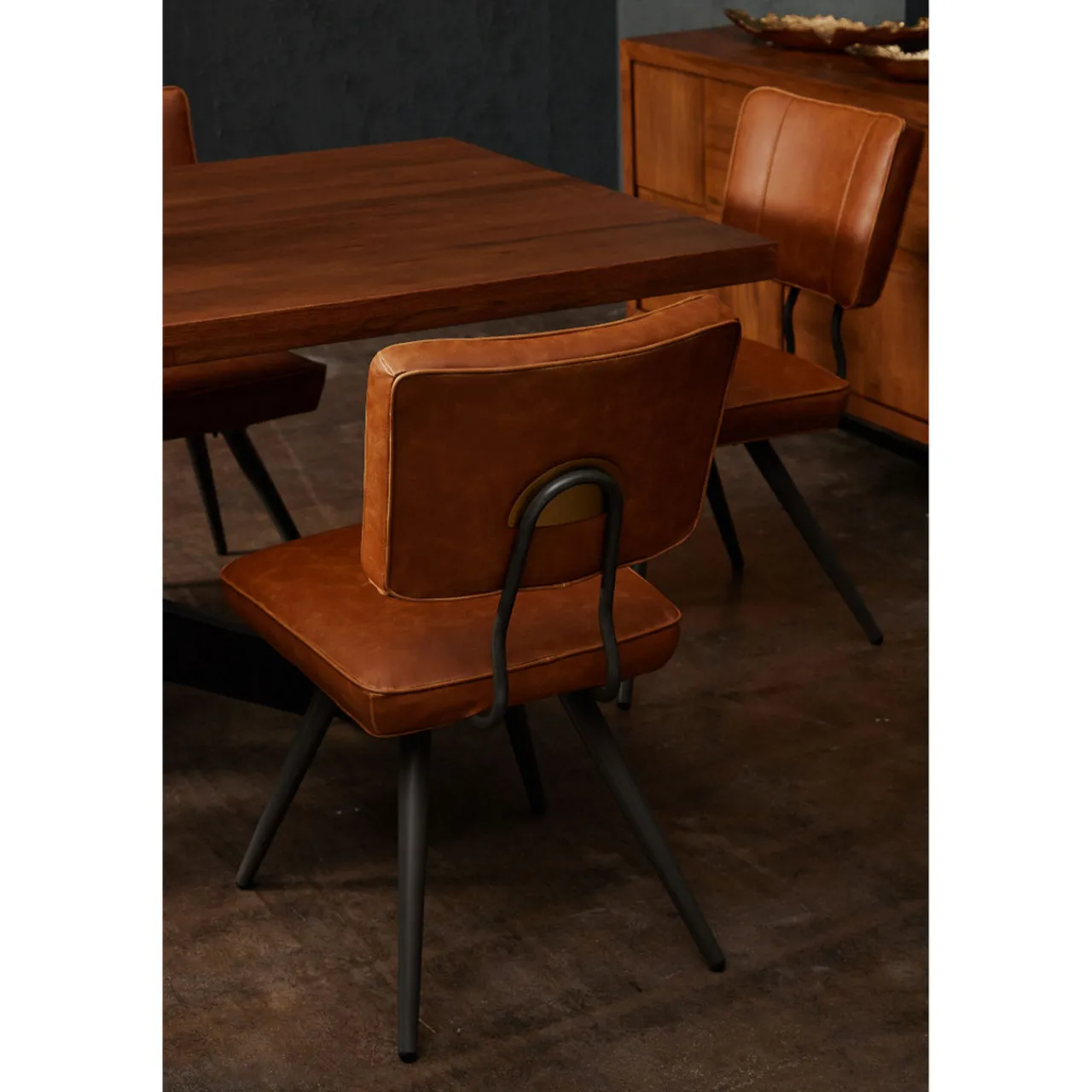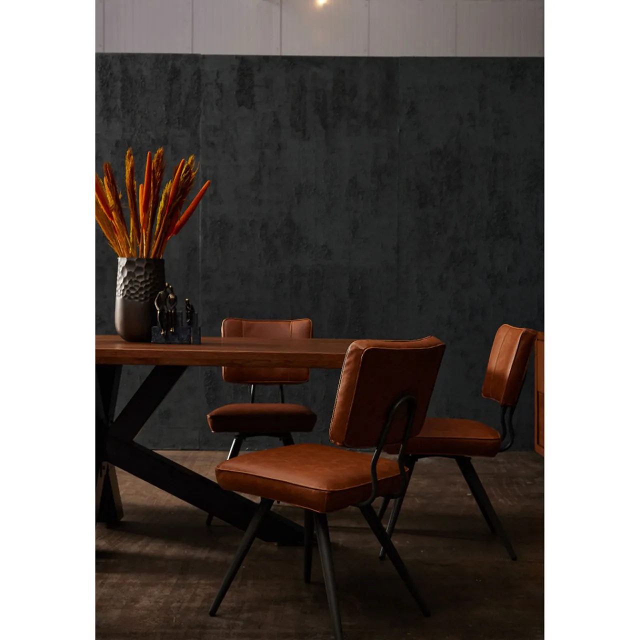 The Cody dining chair combines contemporary industrial design with modern comfort, making it a versatile addition to any dining space. Crafted with attention to detail, this chair features a black metal frame and realistic faux leather upholstery, ensuring it fits seamlessly into various settings, from chic urban apartments to cosy family homes.