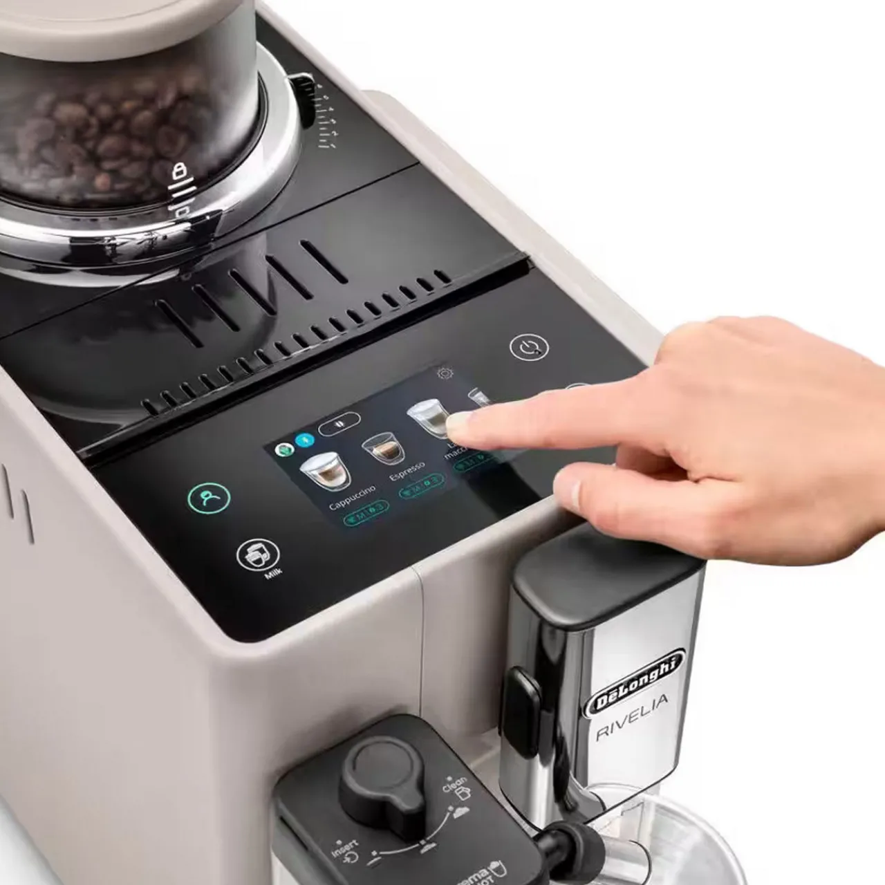 Immerse yourself in the world of coffee with Rivelia. Explore infinite bean varieties with Bean Switch System, enjoy an immersive experience with a 3.5″ full-touch colour display, with rich animations and coffee routines tailored to you. Top your milk-based drinks with fine rich foam using LatteCrema Hot Technology, in a compact machine that fits your style.