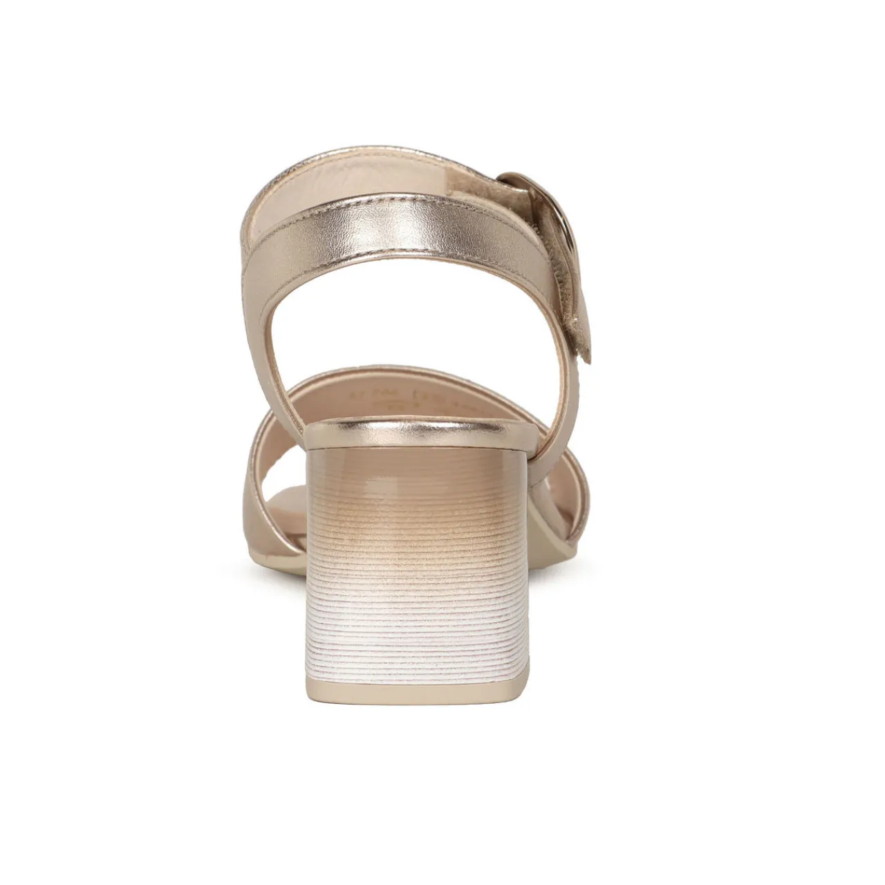 - Leather upper, covered block heel, stylish buckle detail, block heel, metallic finish