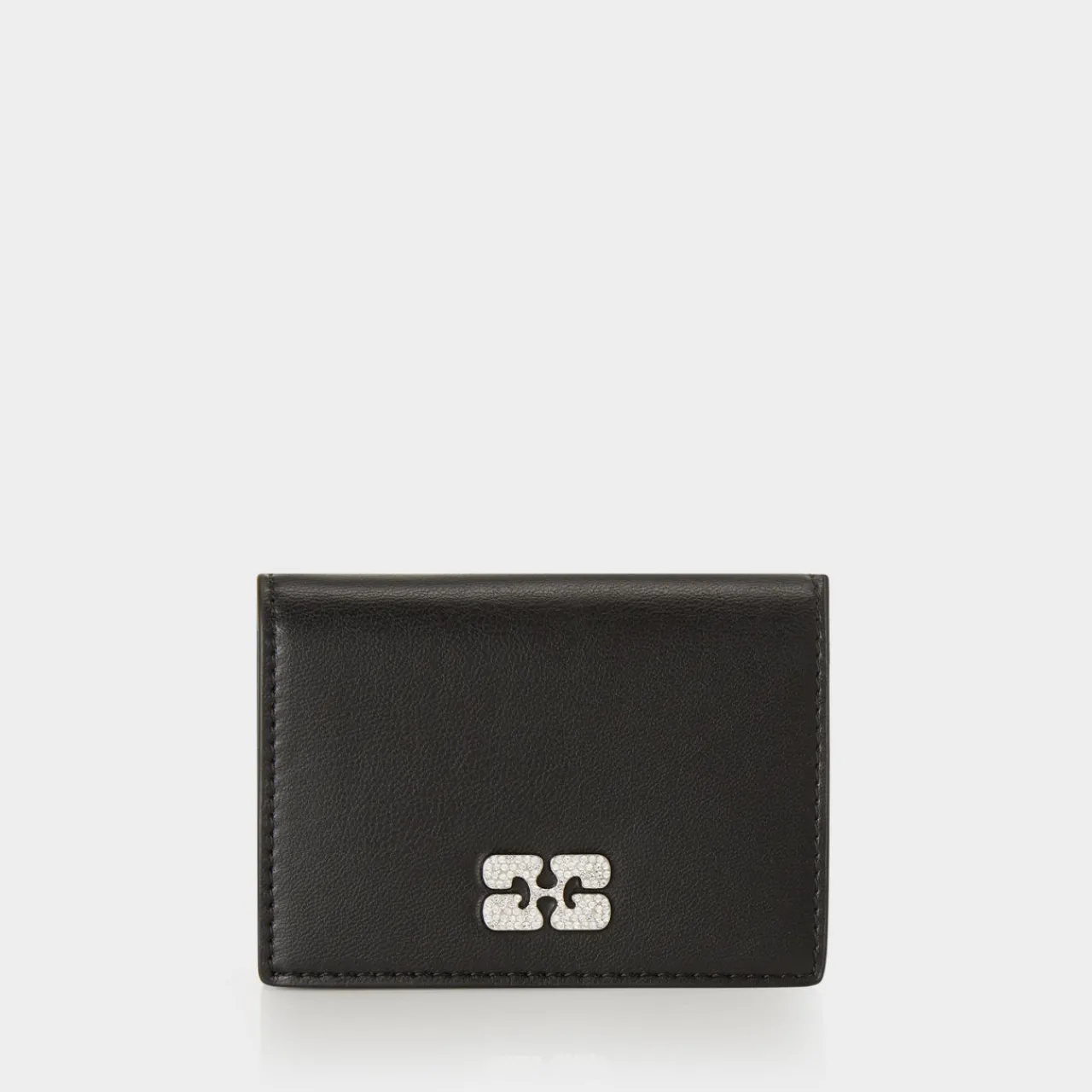 - Flap closure with snap button fastening, grained finish, logo lettering at back, embellished butterfly logo hardware to the front, keyring attachment, silver-tone hardware