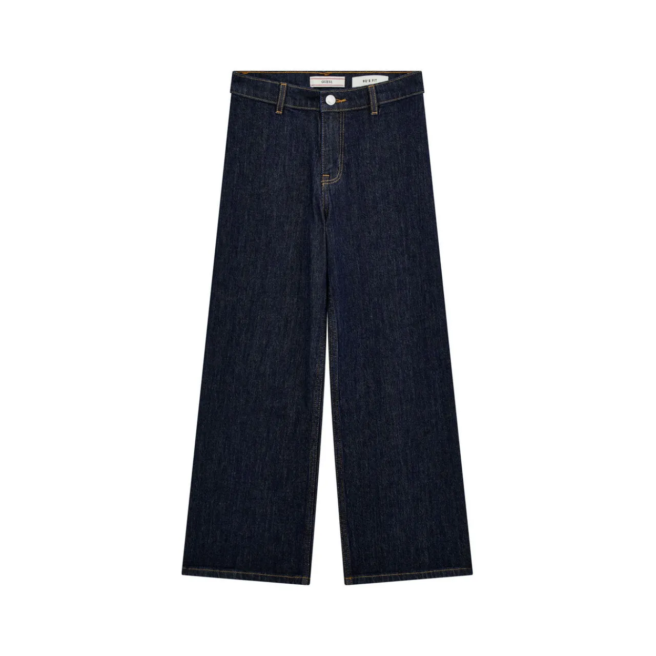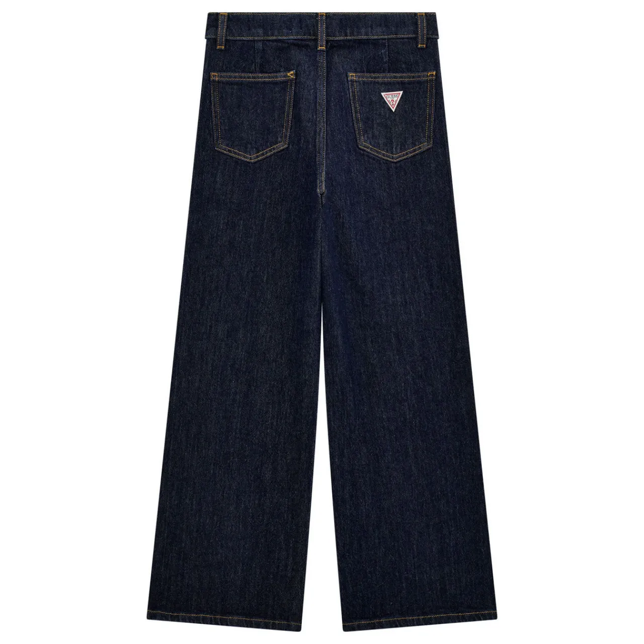 - Dark wash, contrast stitching, belt loops, fly and button fastening, back patch pockets, triangle logo detail