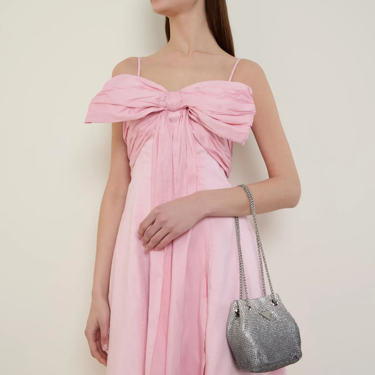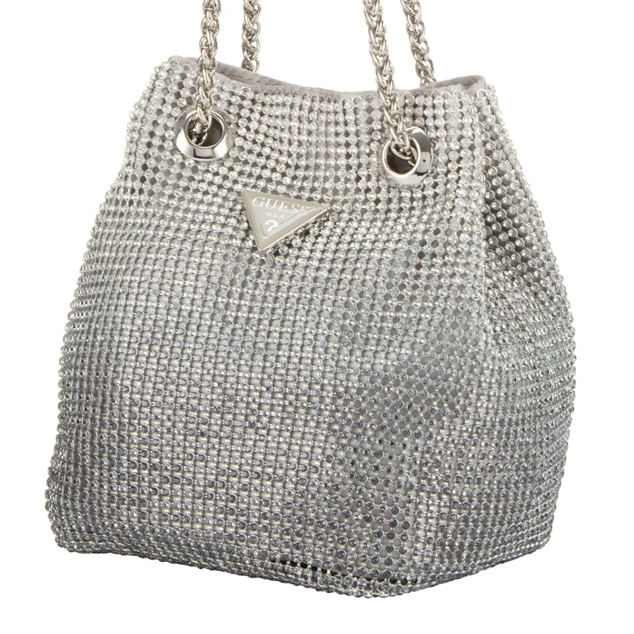 - Magnetic button closure, crystal embellished upper, chain strap, silver-tone hardware, logo details