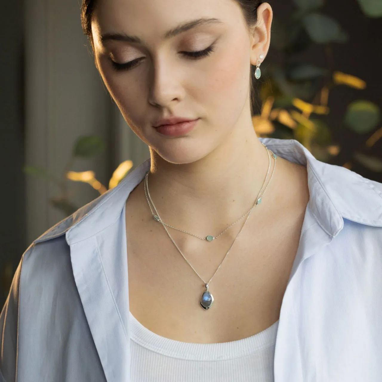 - Sterling silver, cable chain necklace, hand cut Aqua Chalcedony natural gemstone charms
