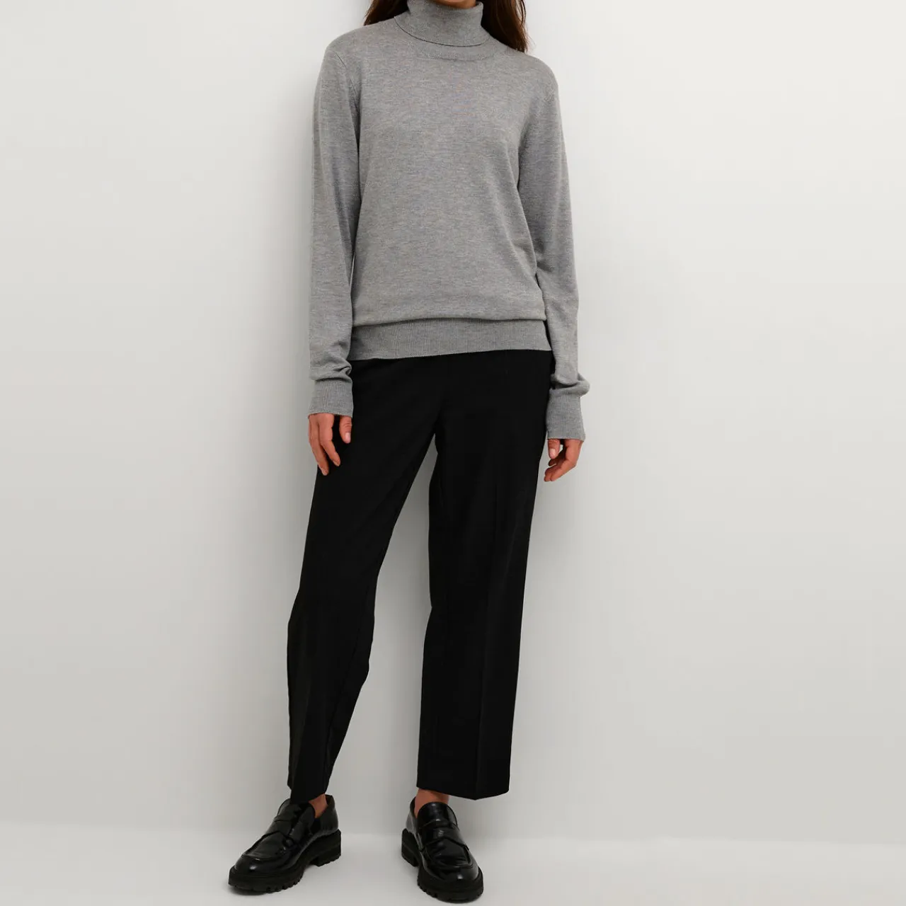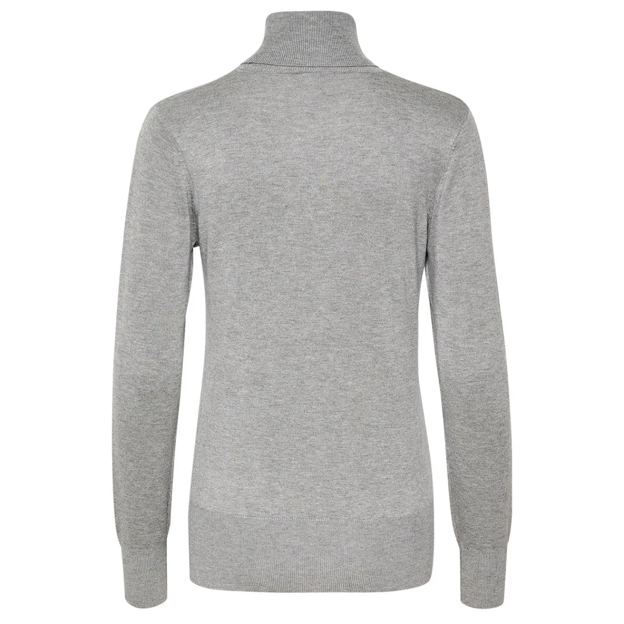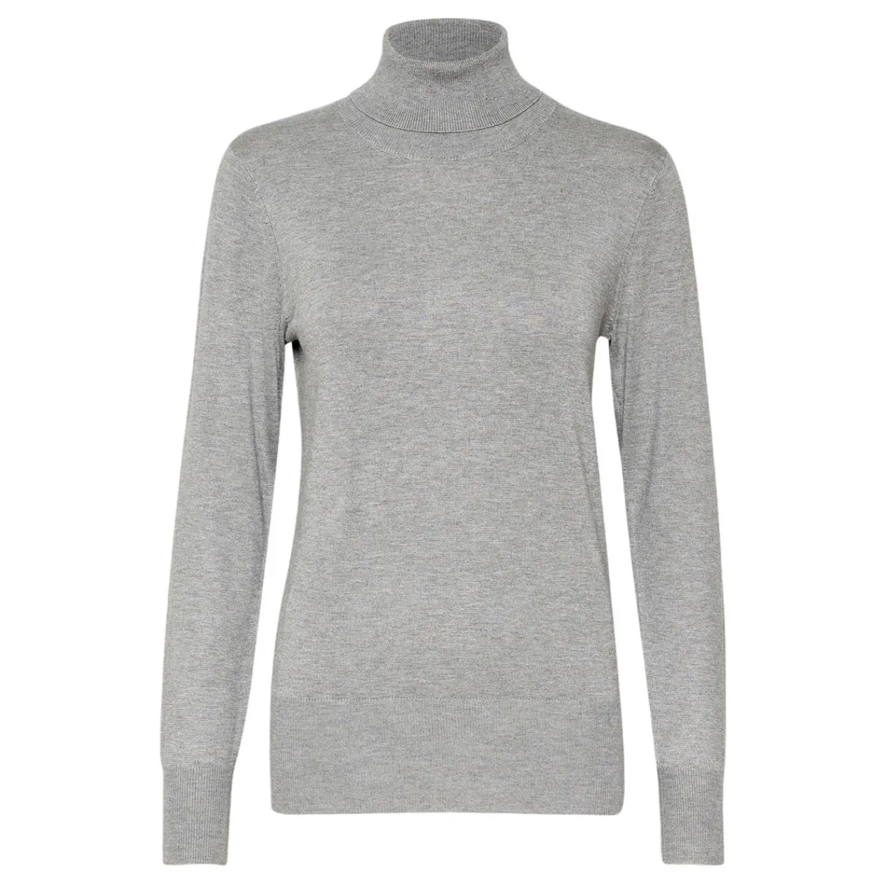 - Roll neckline, fine knit structure, ribbed trims, long sleeves
