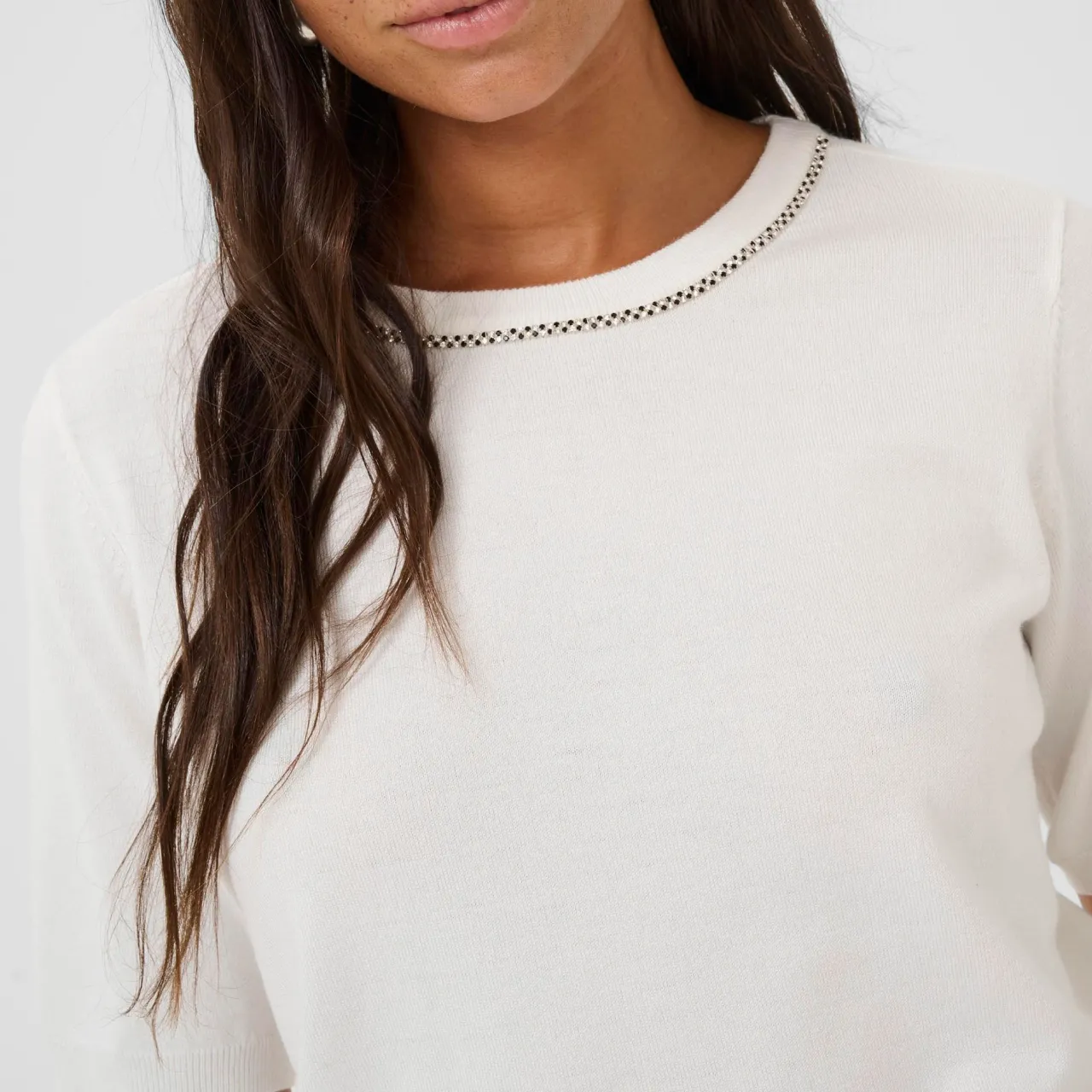 - Knitted, short sleeves, crew neckline