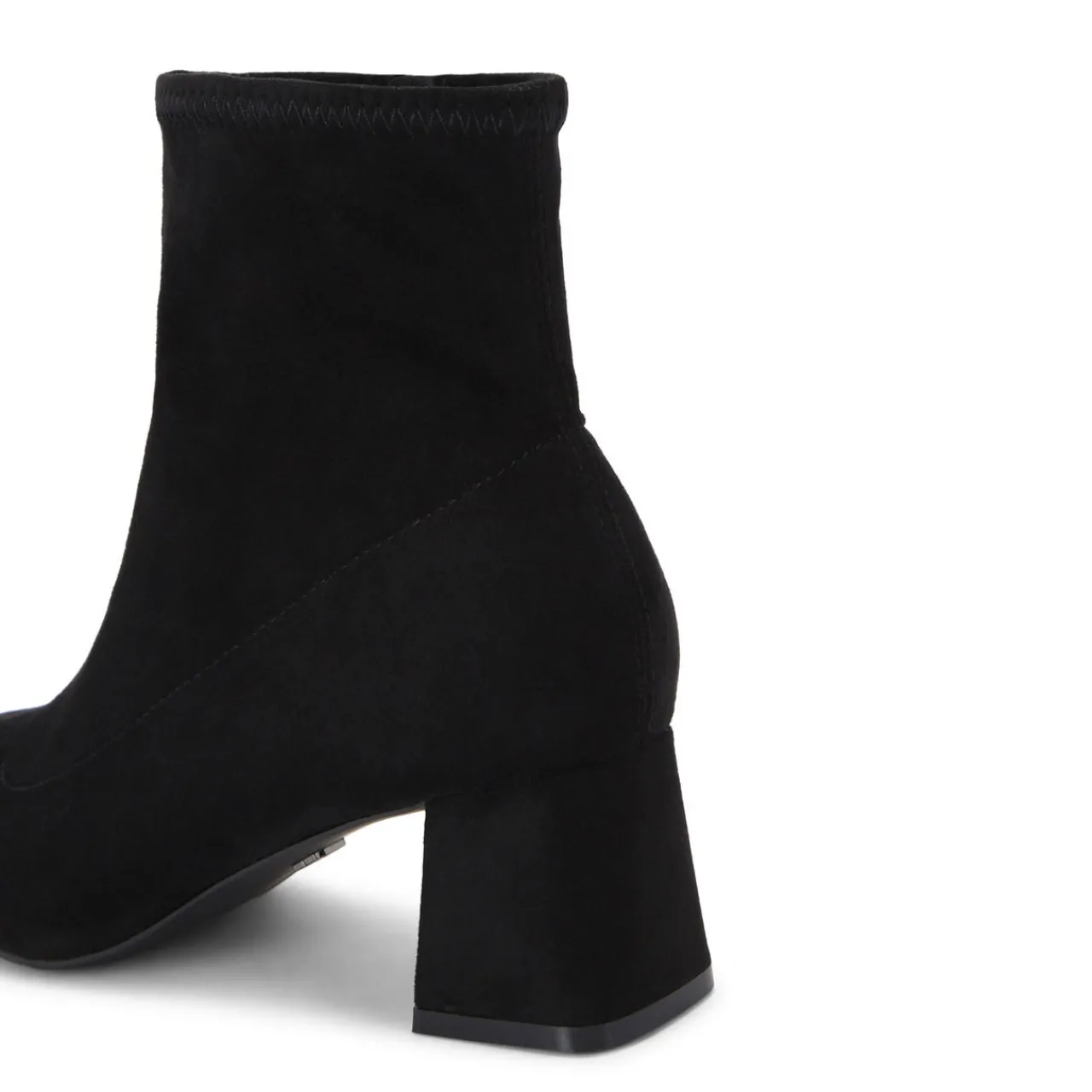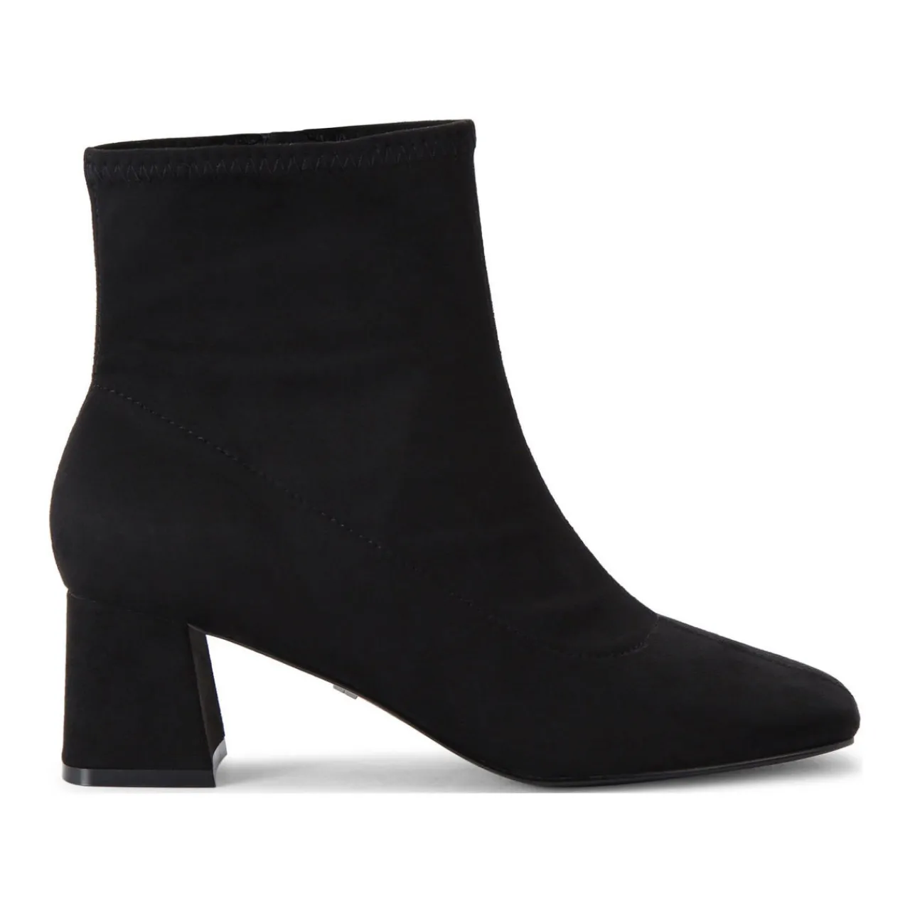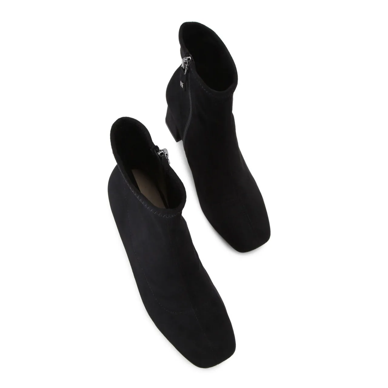 - Microsuede, block heel, inner side zip fastening, almond-shaped toe