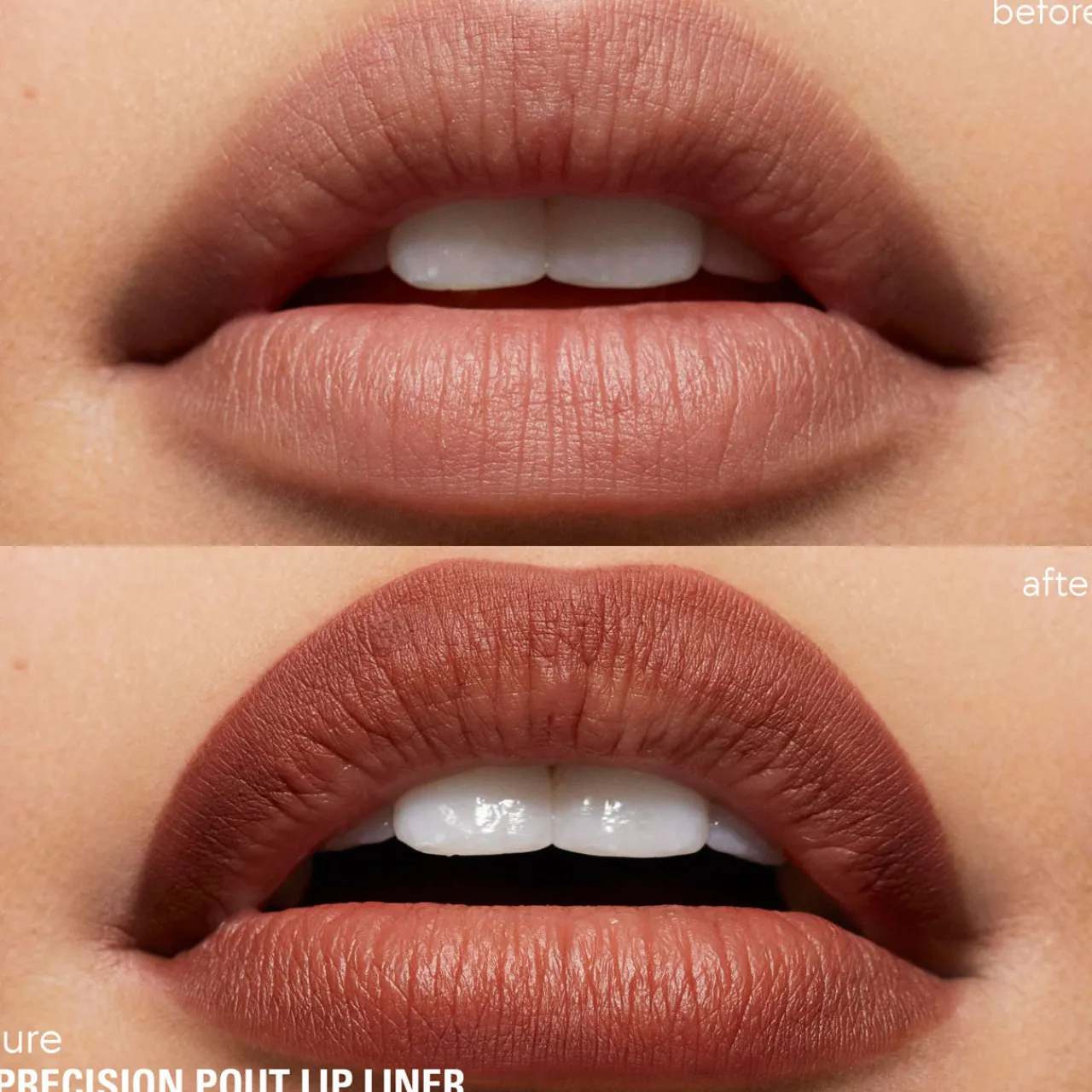 Sculpt, define, and contour with the Kylie Cosmetics Precision Pout Lip Liner Pencil. This ultra-precise, wooden lip pencil makes it easy to create perfect lines and a fuller-looking pout. Featuring a waxy texture and long-lasting formula, this Kylie lip liner pencil grips onto lips for seamless, tug-free application, and stays put without smudging or feathering.