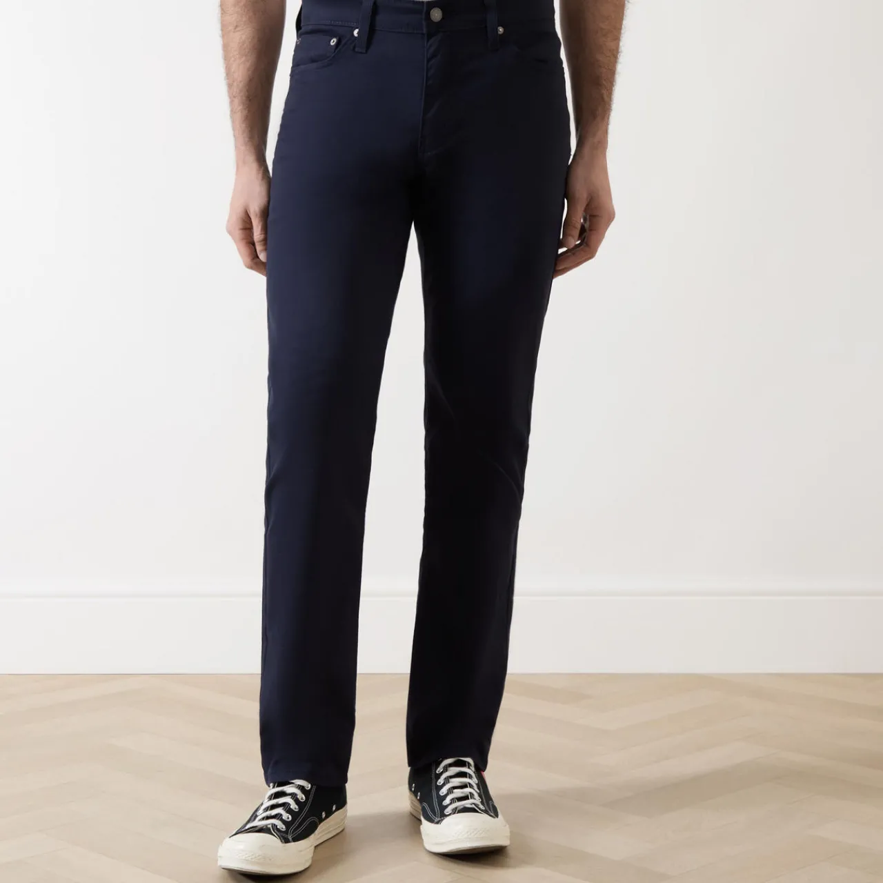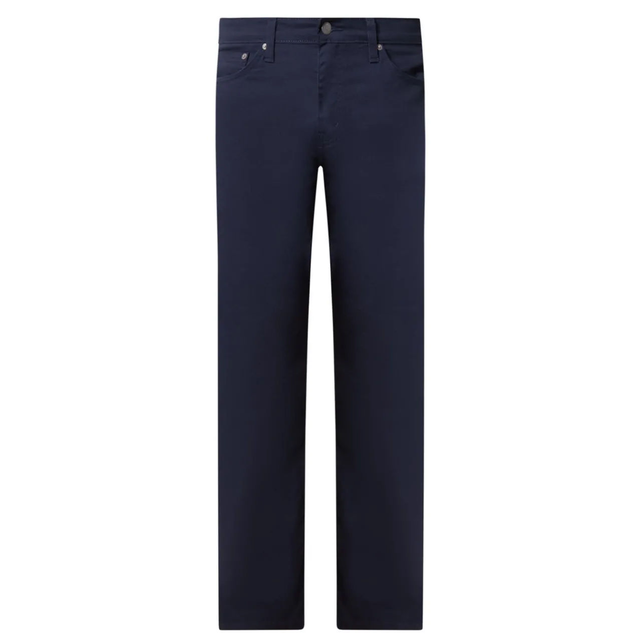 - Button and fly zipper fastening, belt loops, five-pocket style, logo tab and badge at back