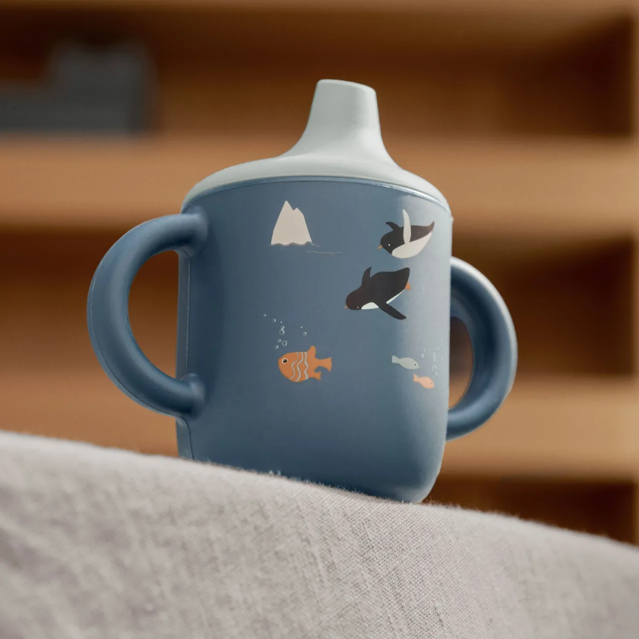 - Removable lid, small spout, smooth finish, tactile feel, two handles, sea animal design details