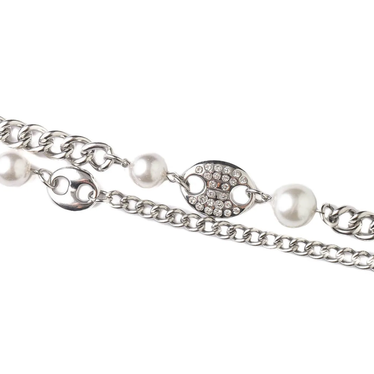 - Double-layered, chunky style, faux pearl and stone embellishments, lobster clasp fastening, heart-shaped logo plate, tarnish resistant and water resistant, adjustable length, gold-plated, presented in a branded gift box