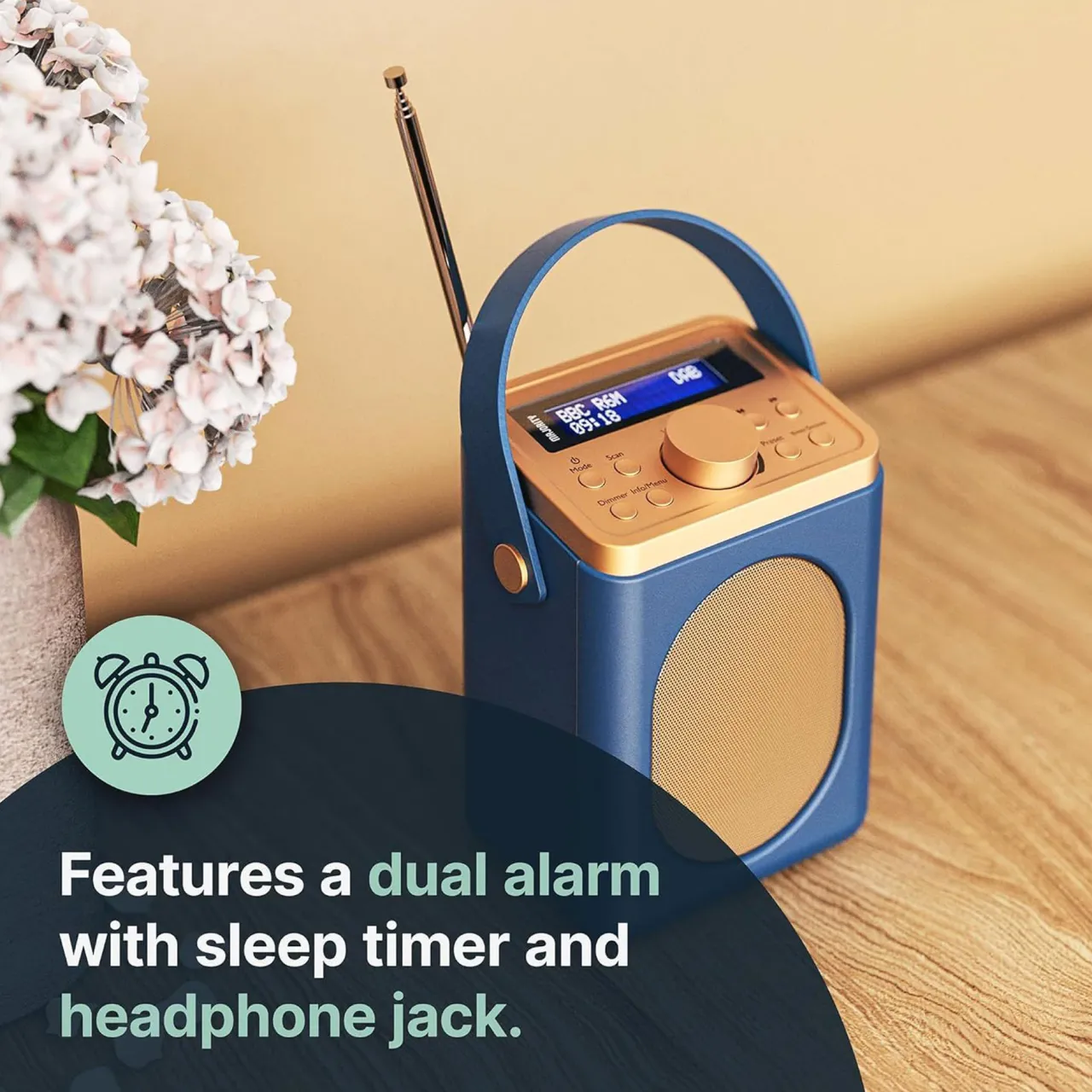 - Dual alarm clock function: Set multiple alarms with snooze for everyday convenience