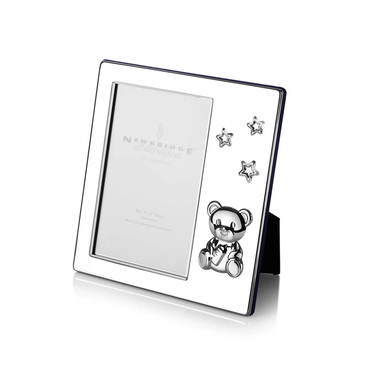- Silver-plated, teddy and star motif, stand at the back, protective anti-tarnish layer, suitable for a single 4×6″ portrait picture