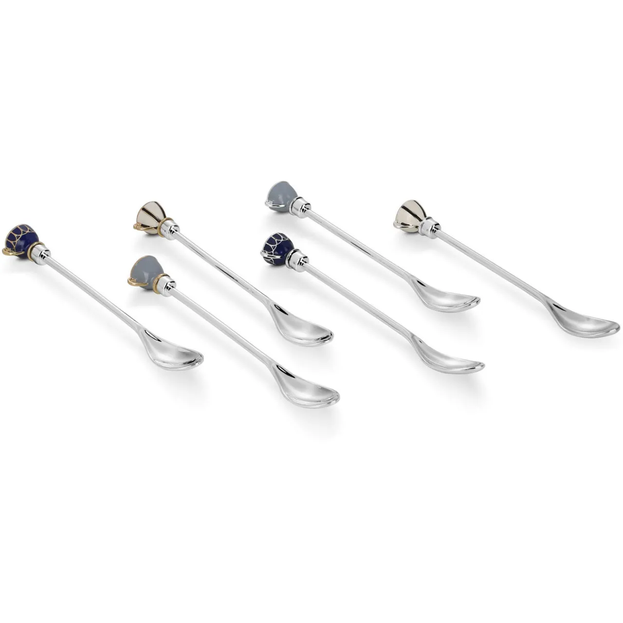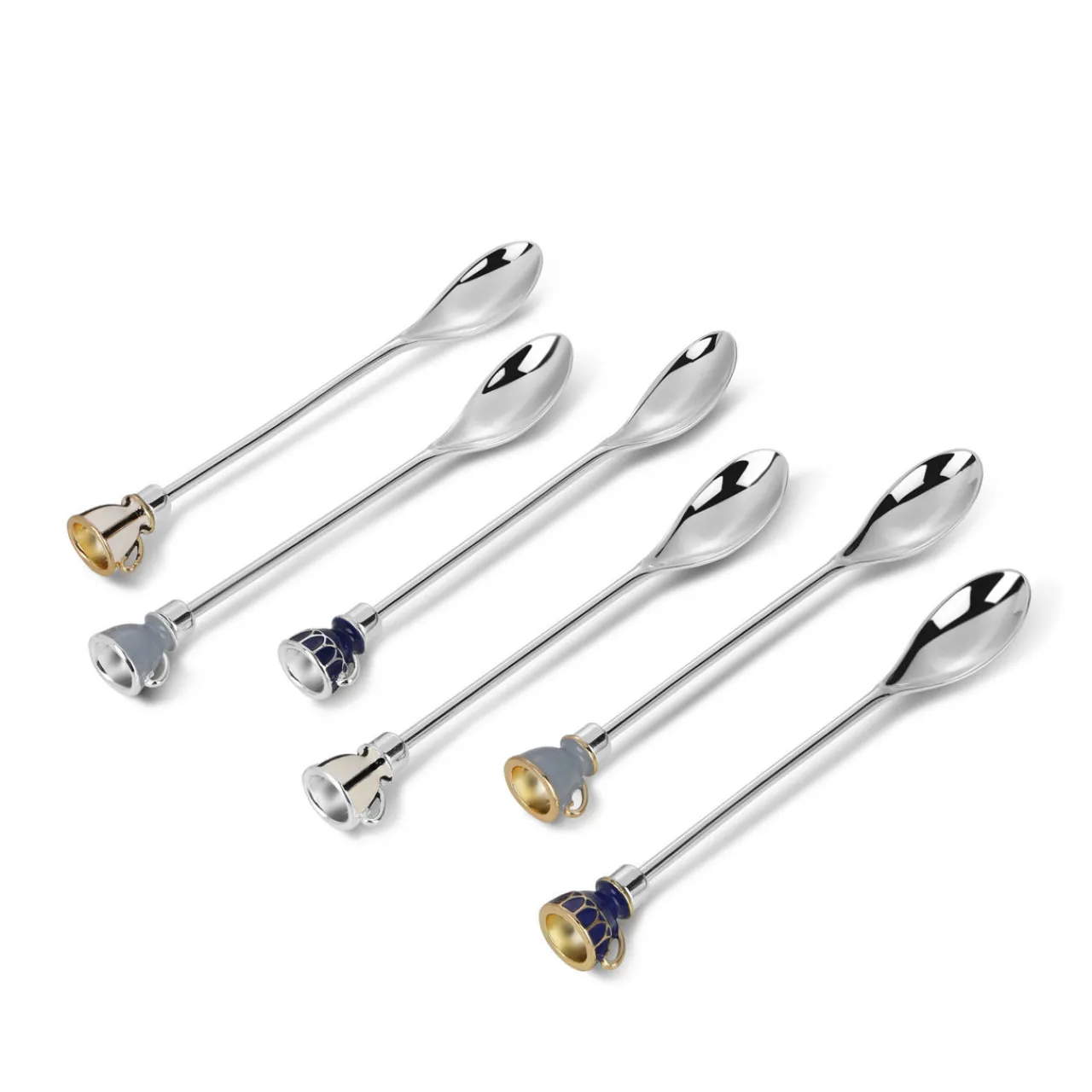 - Set of six, teacup design, coloured enamel detail, silver and gold plated, protective anti tarnish layer, presented in a branded gift box