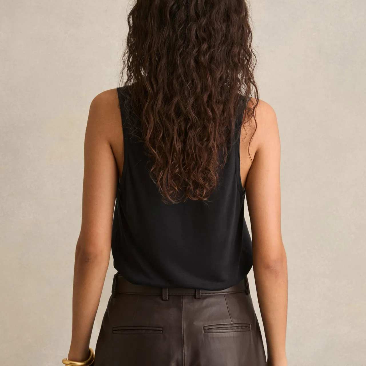 - Silk blend front panel, jersey back panel, scoop neckline, sleeveless