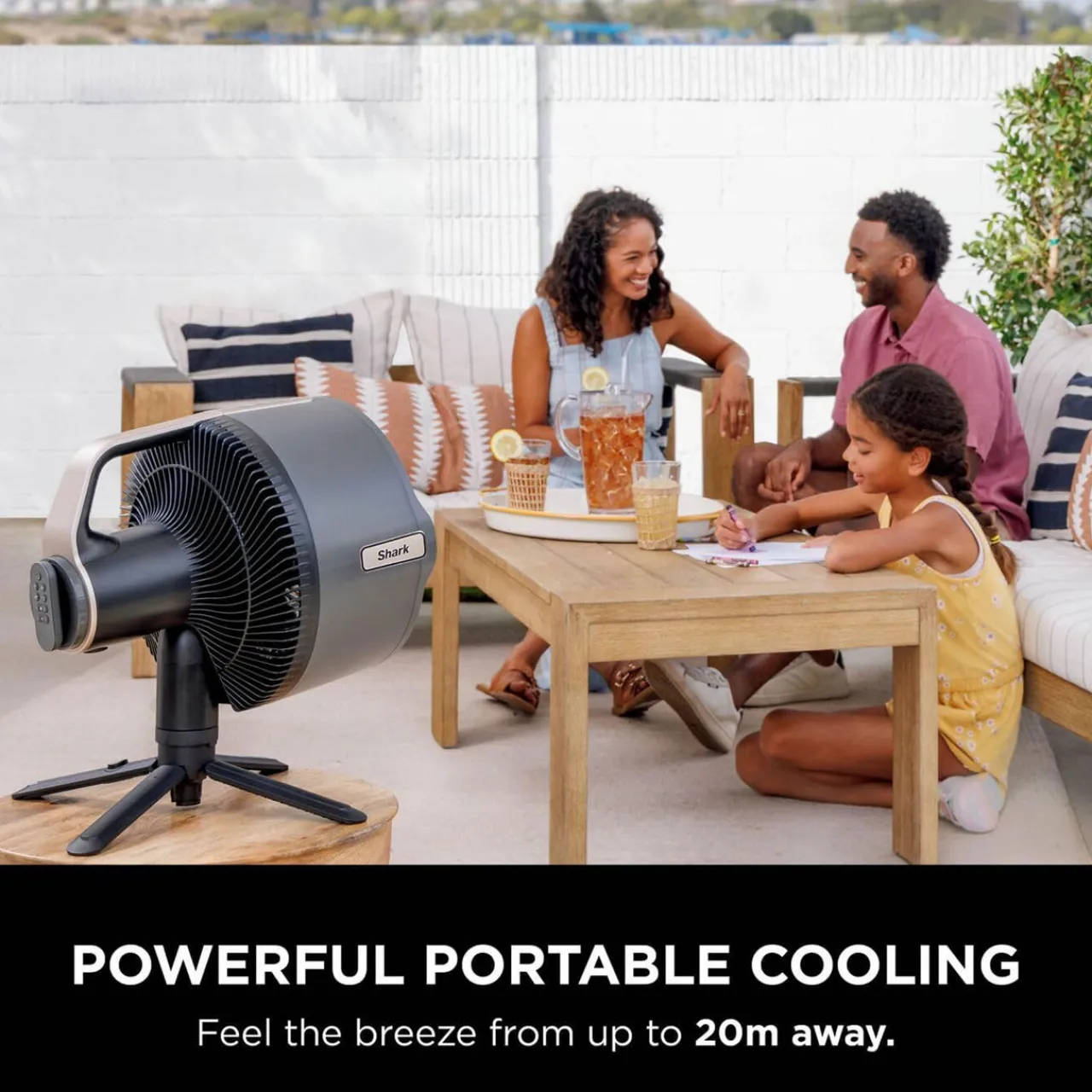 Indoors, its quiet operation makes it ideal for sleeping, working from home, or relaxing on the patio.