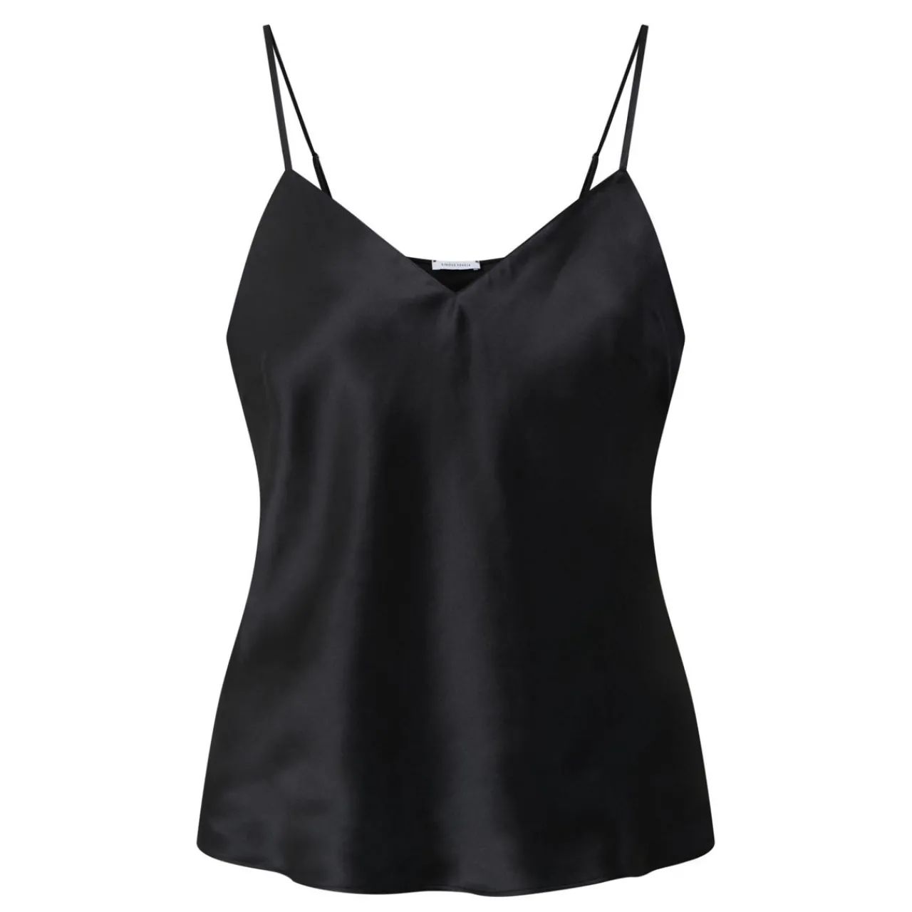 - V-neckline, thin adjustable straps, low back, smooth silk finish