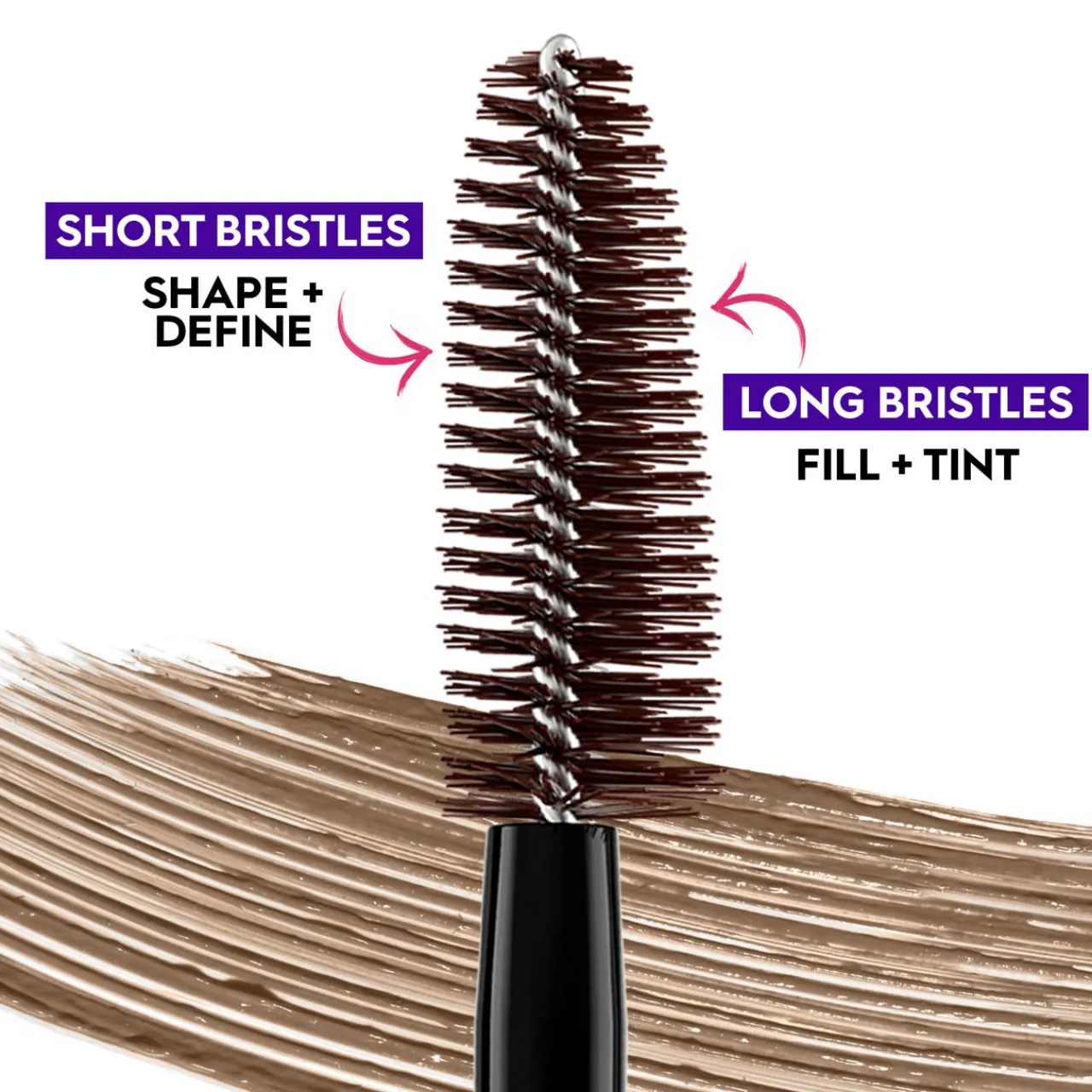 - How to use: Use the tapered, asymmetrical eyebrow brush to pack on hair-like fibres and build up to your desired level of bushy eyebrows—from lil’ bush, to medium, to big bush.
