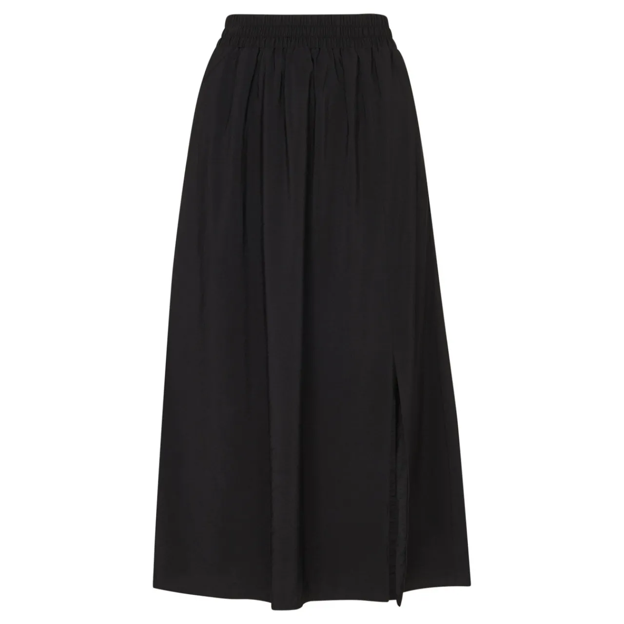 - Elasticated waistband, side split, midi length
