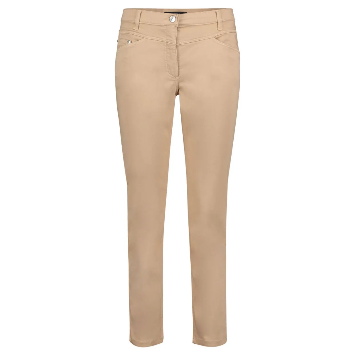 - Mid-rise, slim-leg, full-length, belt loops, concealed fly and button fastening, five-pocket styling, clean hems