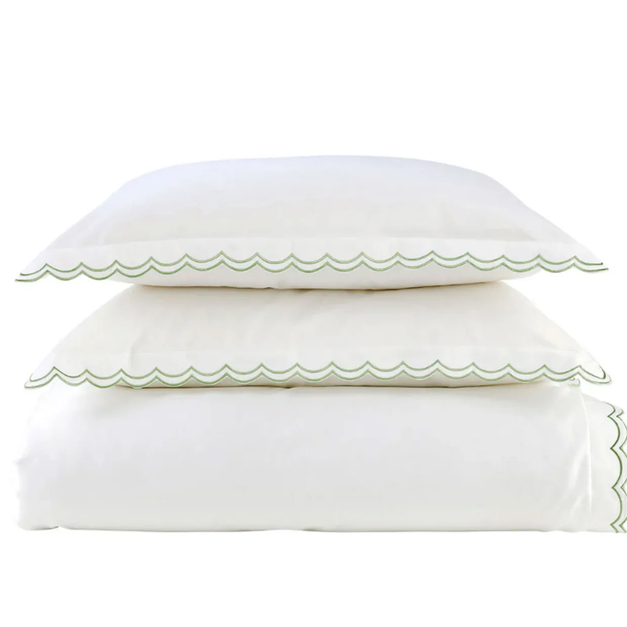 - Silky smooth cotton sateen, ccallop edge, contrast border trim
