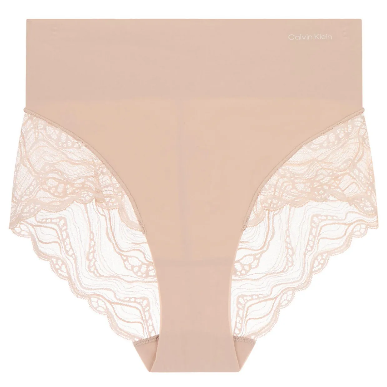 - High-rise, sheer lace back and hem, targeted tummy control, scalloped lace panels, stretch lace design, logo printed waistband