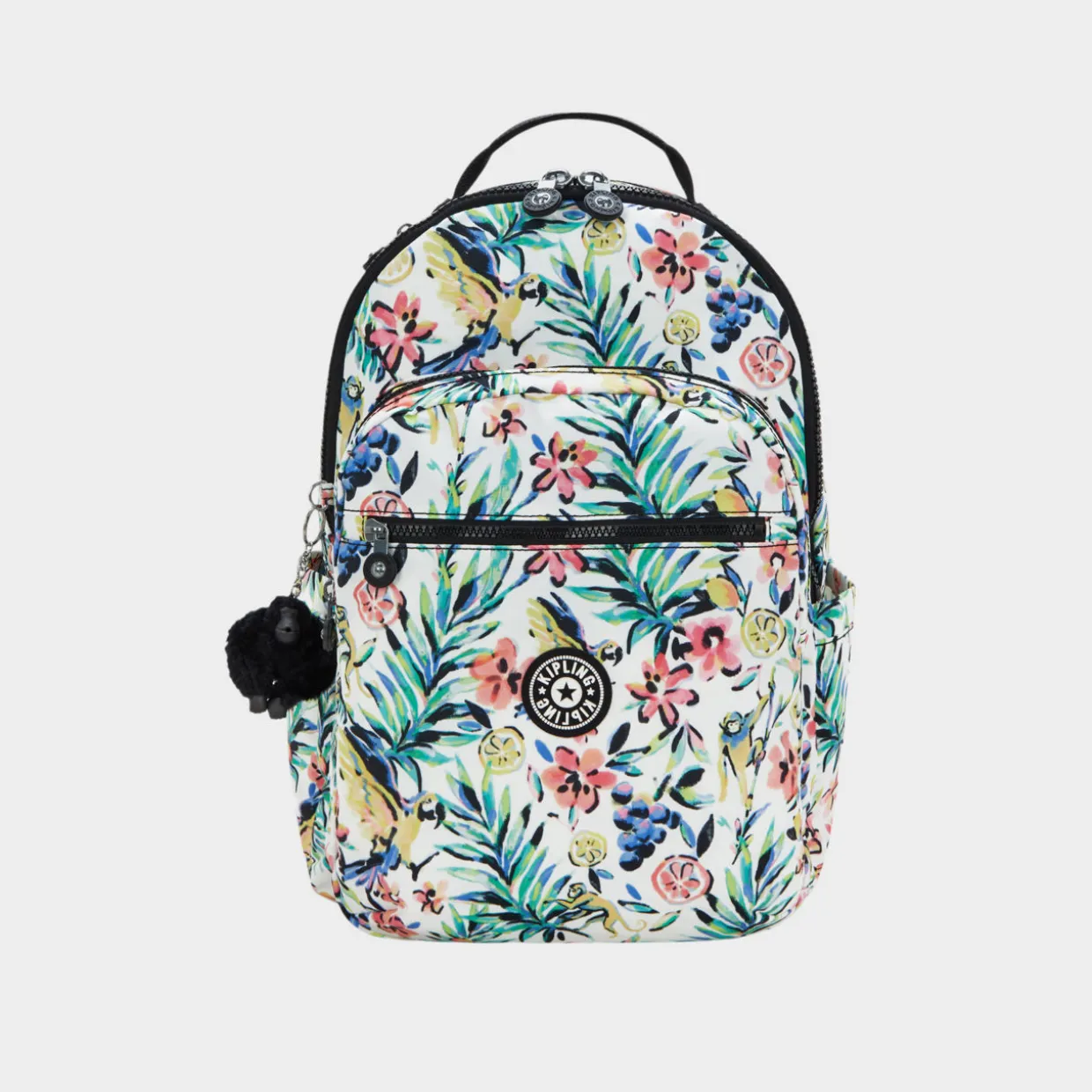 - Features:Key fob, zipped main compartment, four functional compartments (one laptop, one wallet, two pen), 15-inch laptop compartment, open inside pocket, three zipped front pockets, two elastic open side pockets, adjustable backpack straps, top handle
