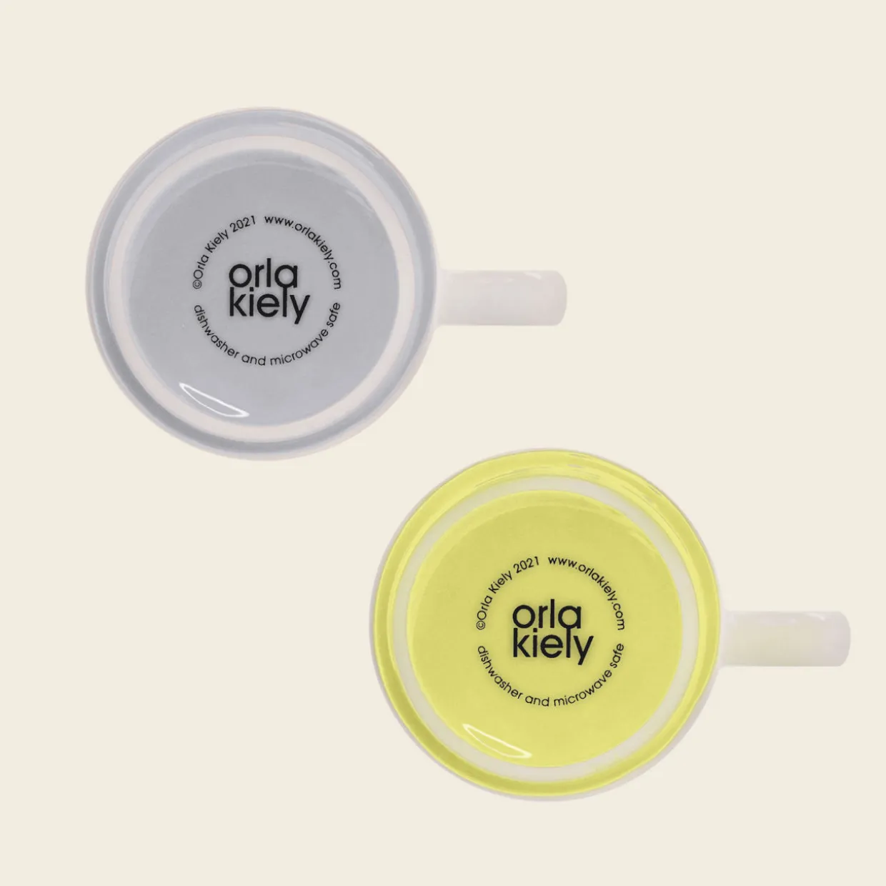 Set of Two Mugs – Block Flower Slate- Ochre