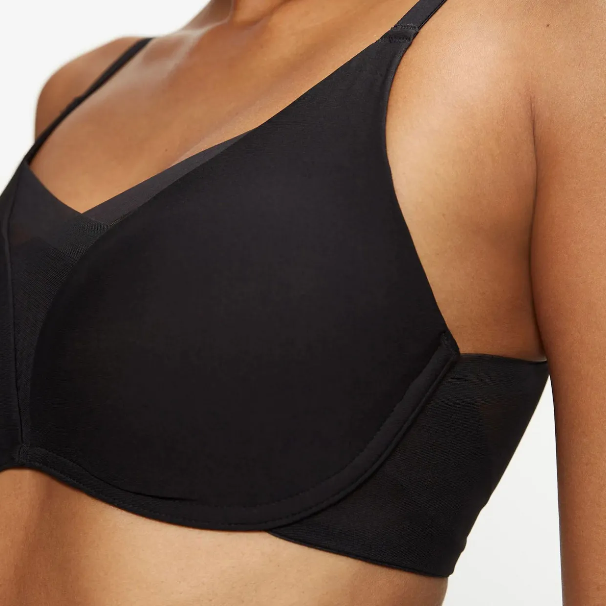 - Adjustable shoulder straps, 4D foam cup, cross-over mesh, deep v-neckline, non-wired padded smoothing bra, innovative 4D stretch foam smart sizing cups, cross-over mesh layering for extra front support and deeper neckline, back and underarm smoothing with light self-edge mesh