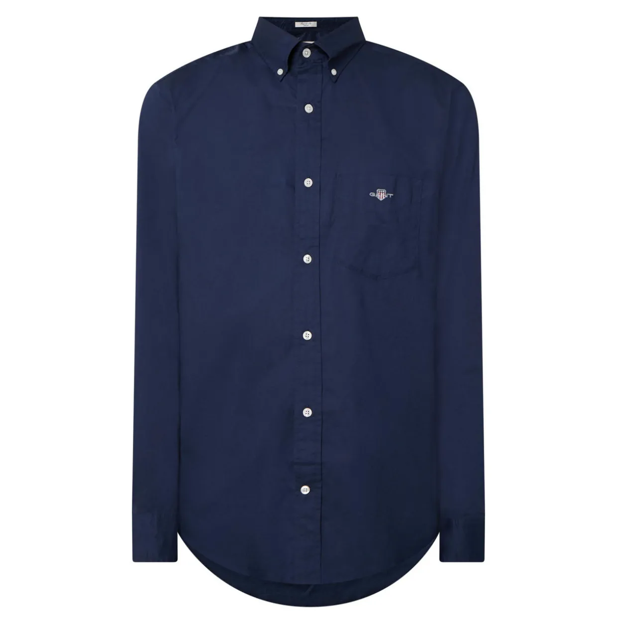 - Button-down collar, button fastening, curved hemline, chest patch pocket, embroidered shield logo, box pleat and locker loop at rear