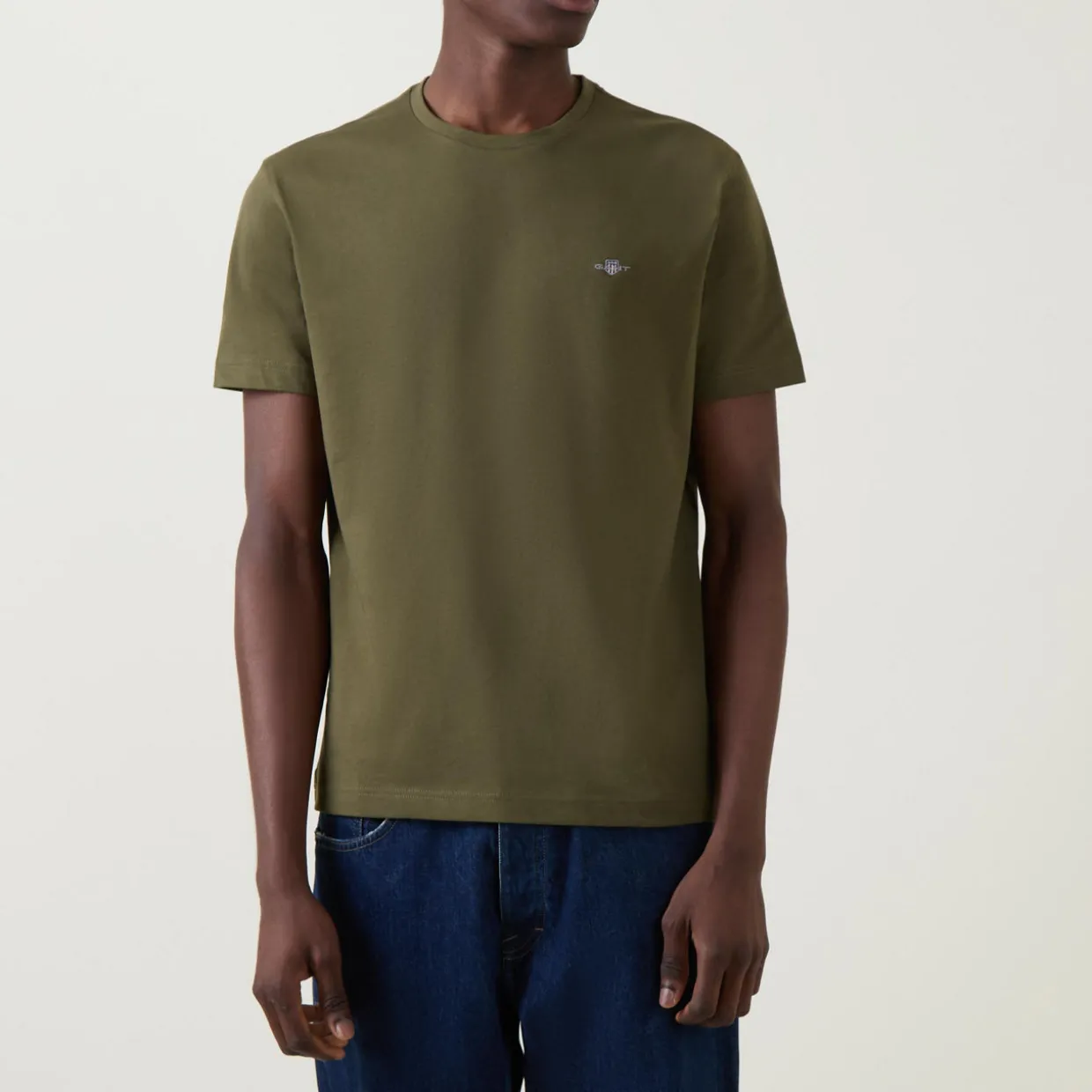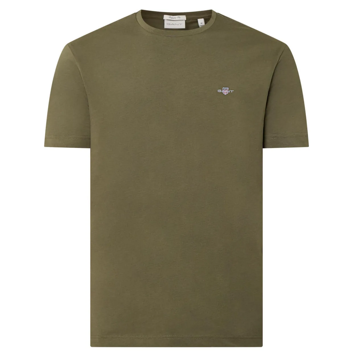 - Round neckline, straight hemline, embroidered shield logo detail, short sleeves, lightweight