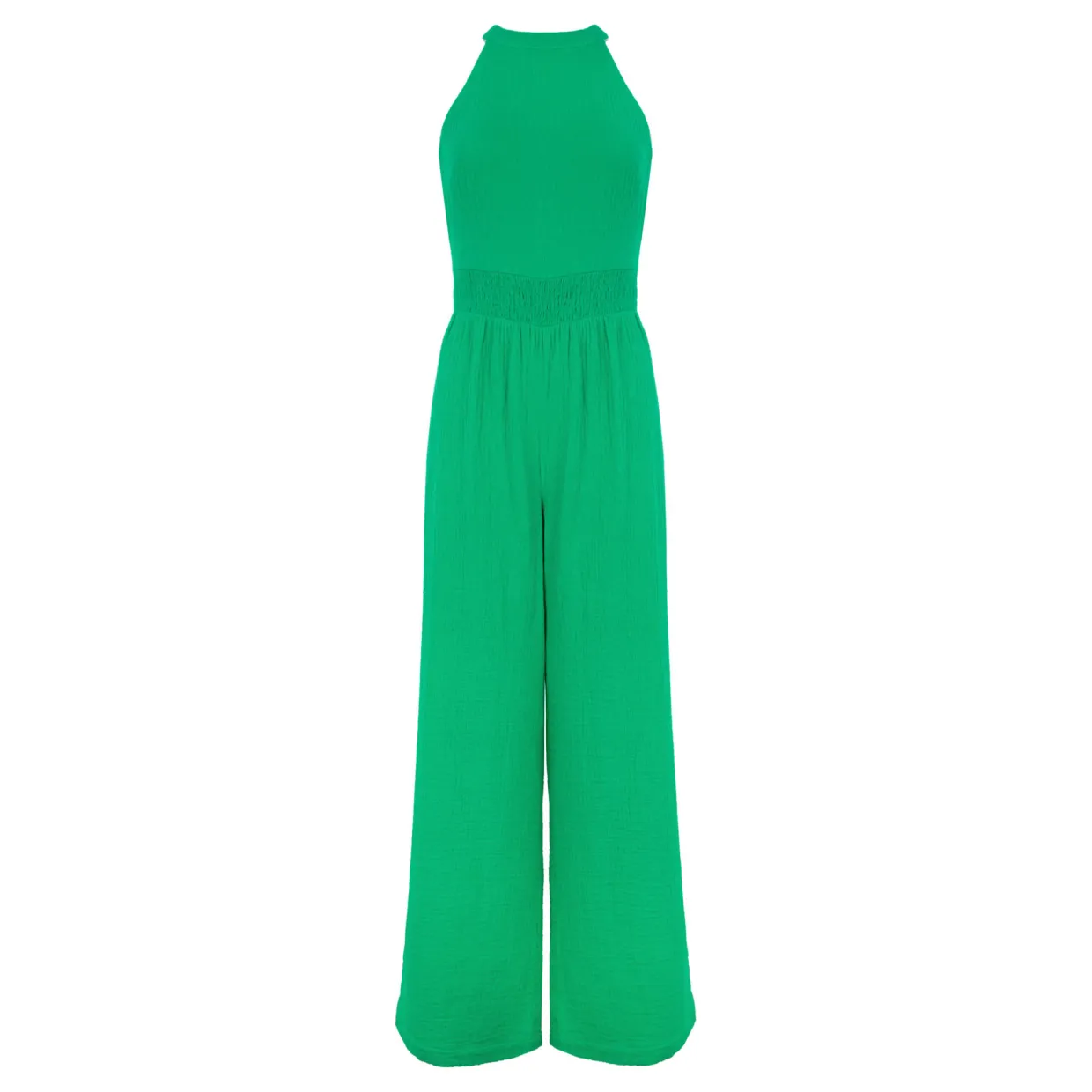- Sleeveless, halter neck, plissé finish
