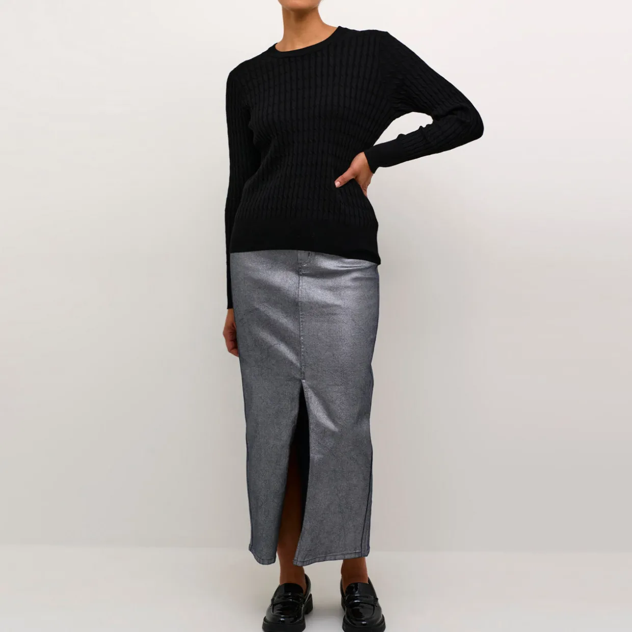 - Round neckline, long sleeves, straight hemline, rib knit structure