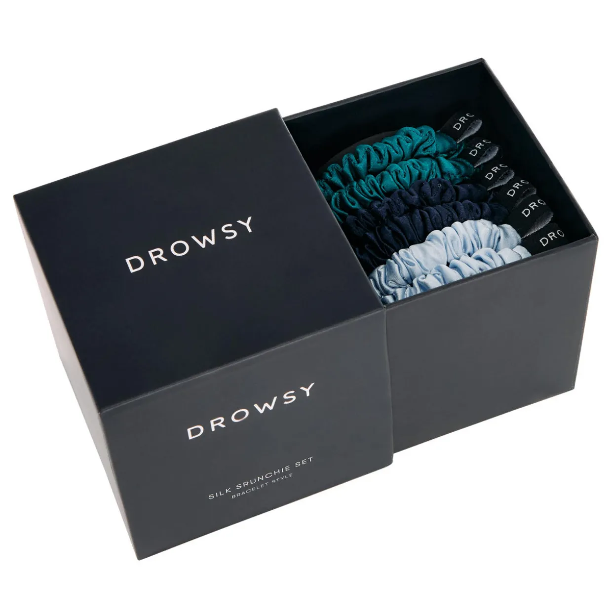 - Pack of six, skinny width, silk cover, logo tags, three colours