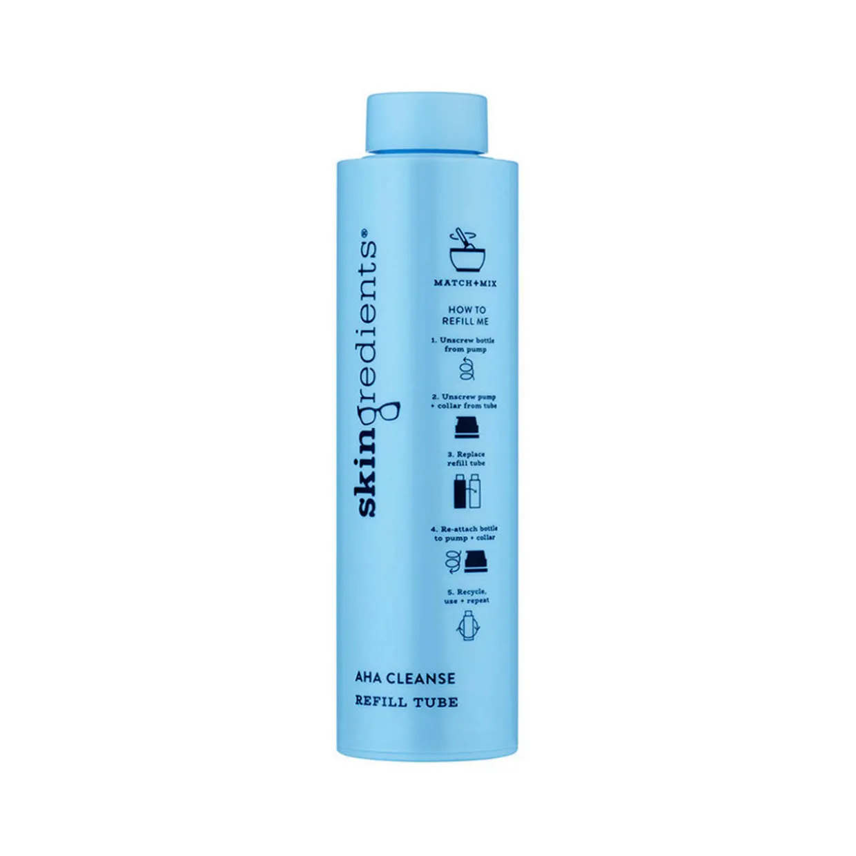 - How to Use: Use in the PM two to three times a week, after pre-cleansing – remember, be careful of your delicate eye area! Pump a coin-sized amount of cleanser into wet palms. Massage into your face using firm, circular, outward motions. After 60 seconds, rinse and remove with hands or a face cloth. To use AHA Cleanse as a Micro-Mask: Massage AHA Cleanse into cleansed skin, leave for 7 minutes and then remove. We recommend that you do this once a week, maximum. It’s 2 products in 1 – we love it just as much as you! Please note: this slot-in refill tube clicks into the original, primary packaging. You must buy the original, refillable AHA Cleanse Primary Pack first to use your refill tube. How To Refill: 1.To begin, twist your inner tube out. 2.Twist off the pump and the collar – keep your pump and collar. 3.Take your refill tube, remove the lid, replace the collar and twist the lid back on. 4.Screw the inner tube into the outer tube and away you go, ready to cleanse. How To Recycle: The inner tube (refill): is made from polypropylene (aka PP) and polyethylene (aka PE), both of which are widely recyclable plastics. How to recycle your inner tubes: 1.Use every last pump of your AHA Cleanse. 2.Thoroughly rinse the refillable inner tube. 3.Make sure that the refill is completely dry. 4.Pop in your household recycling bin.