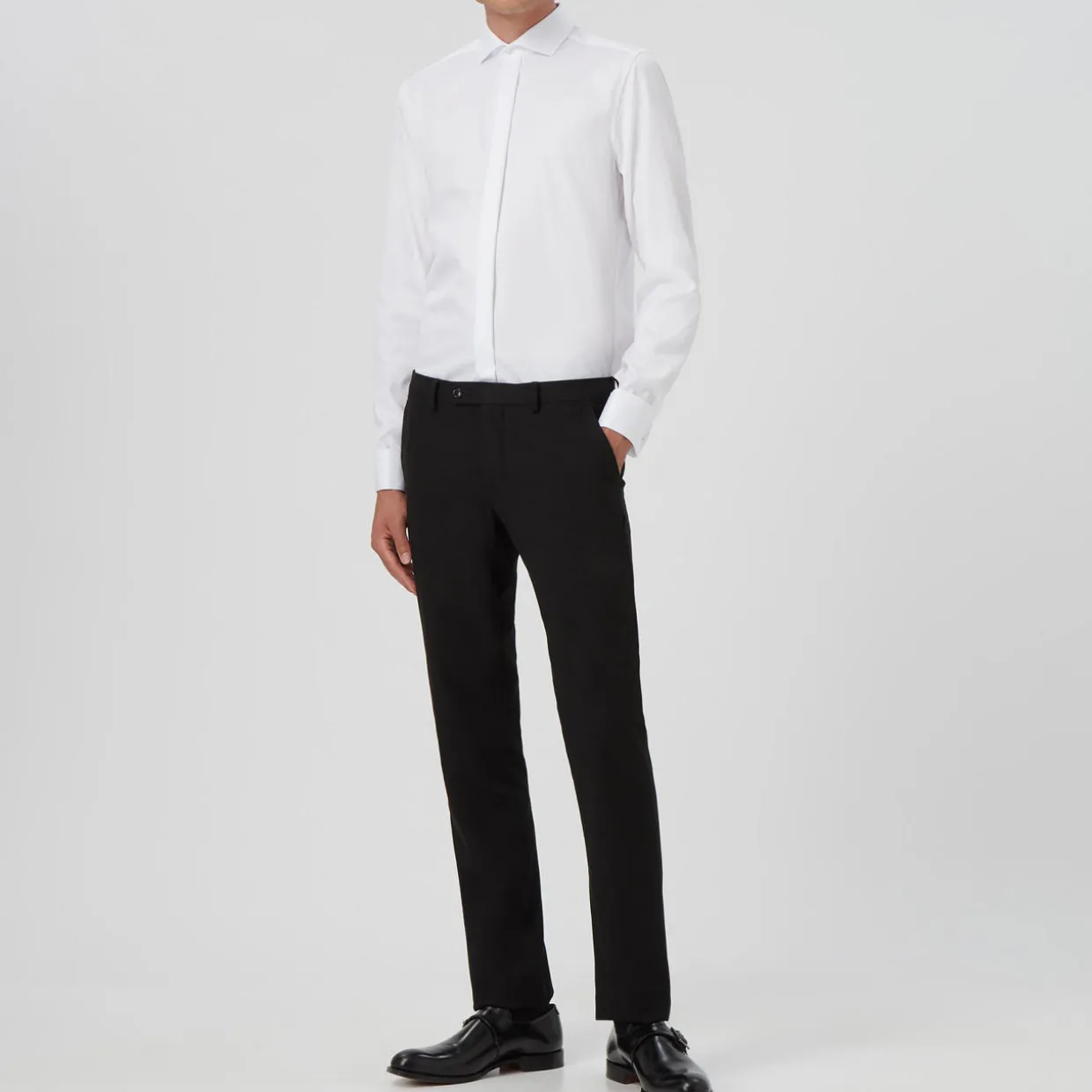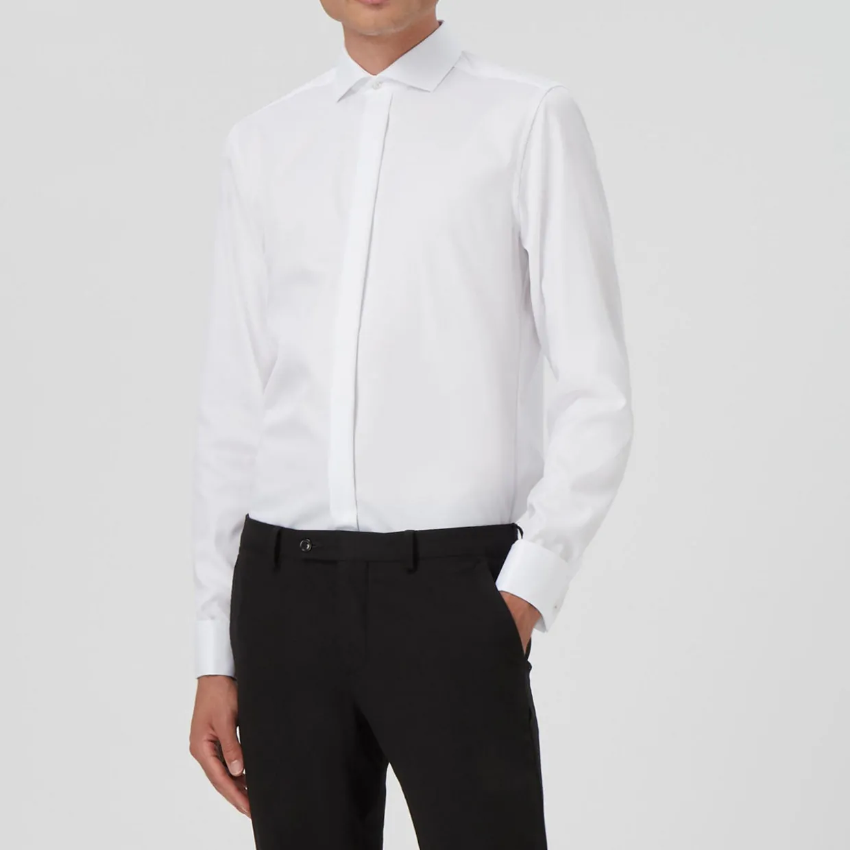 - Long sleeves,shark collar, concealed button placket, envelope cuff, non-iron.