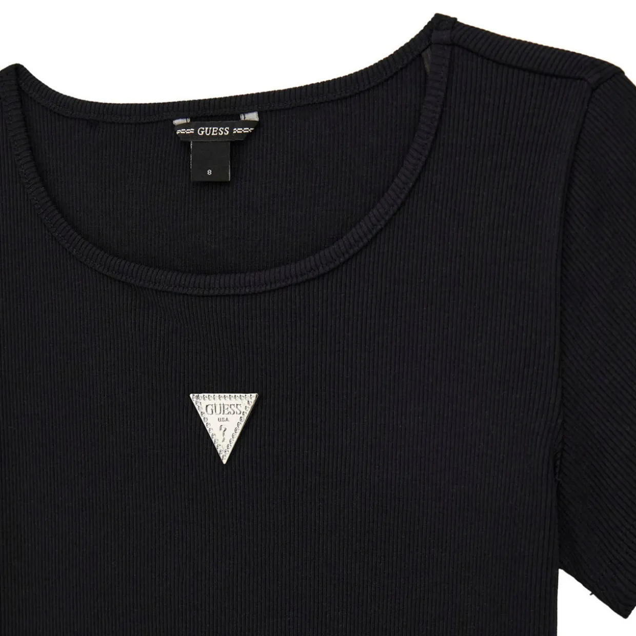 - Round neckline, short sleeves, straight hemline, triangular logo detail