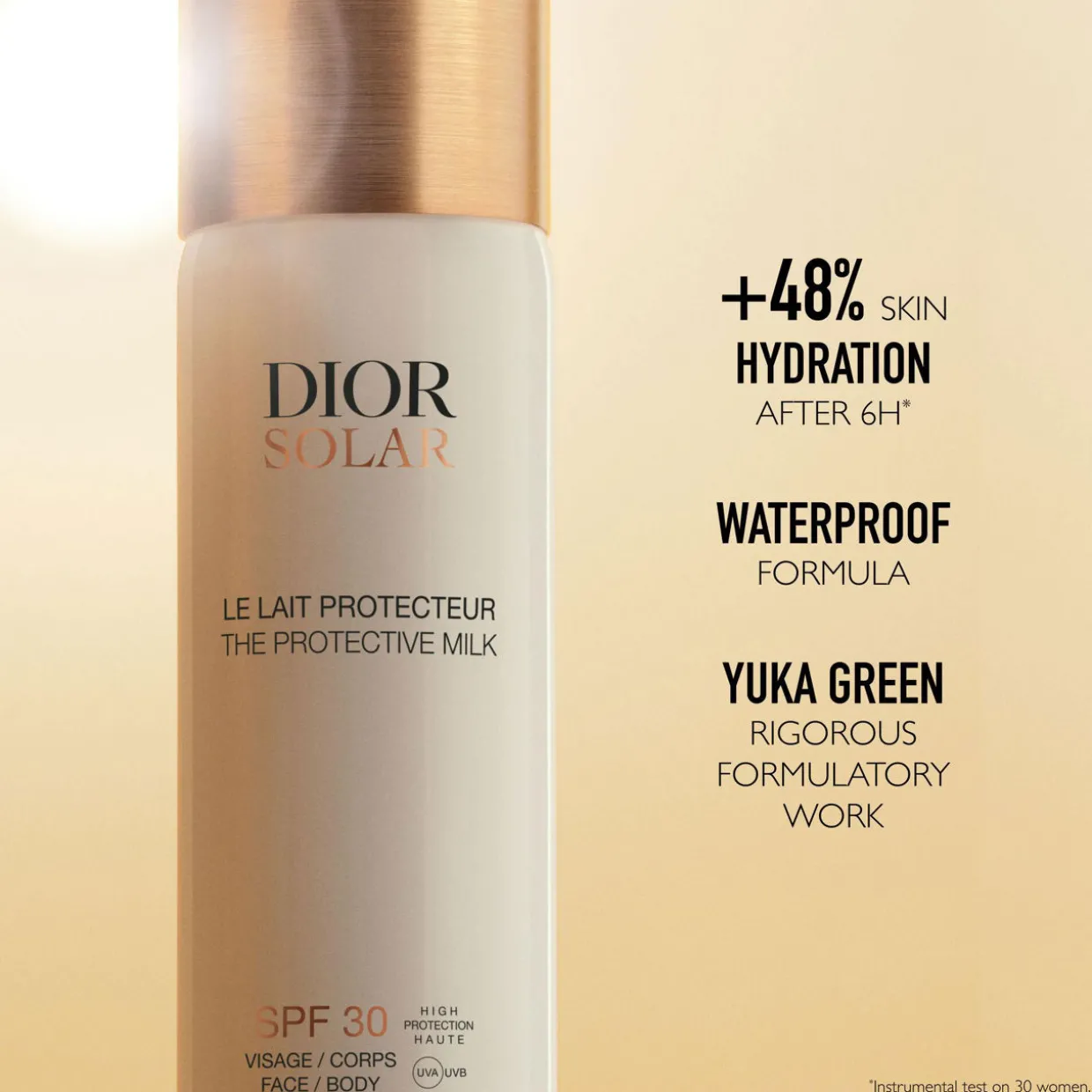 Description: The Protective Milk SPF 30 is a water-resistant, milky mist sunscreen that provides even coverage and a pleasant fragrance. It enhances the skin with a radiant, satiny veil while protecting against UVA/UVB rays and external stressors.