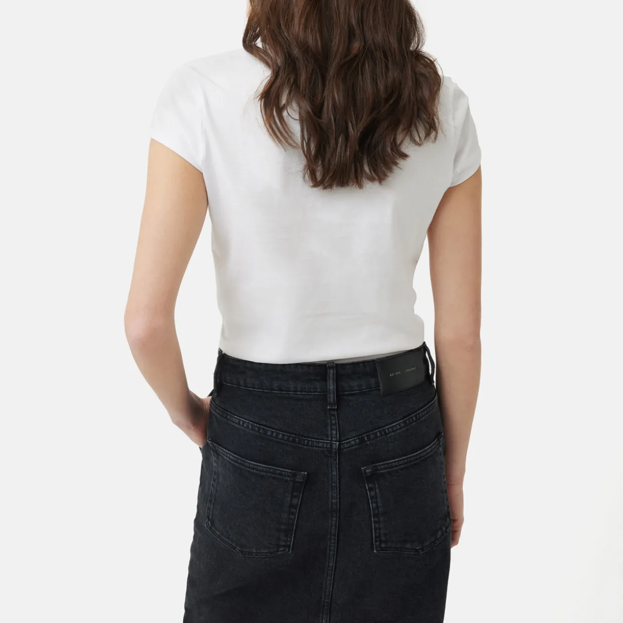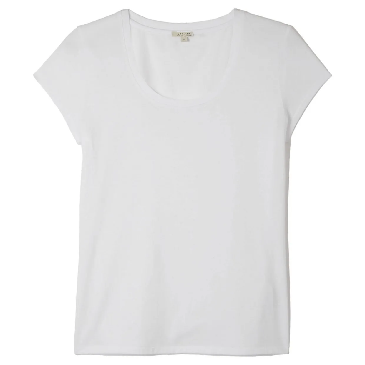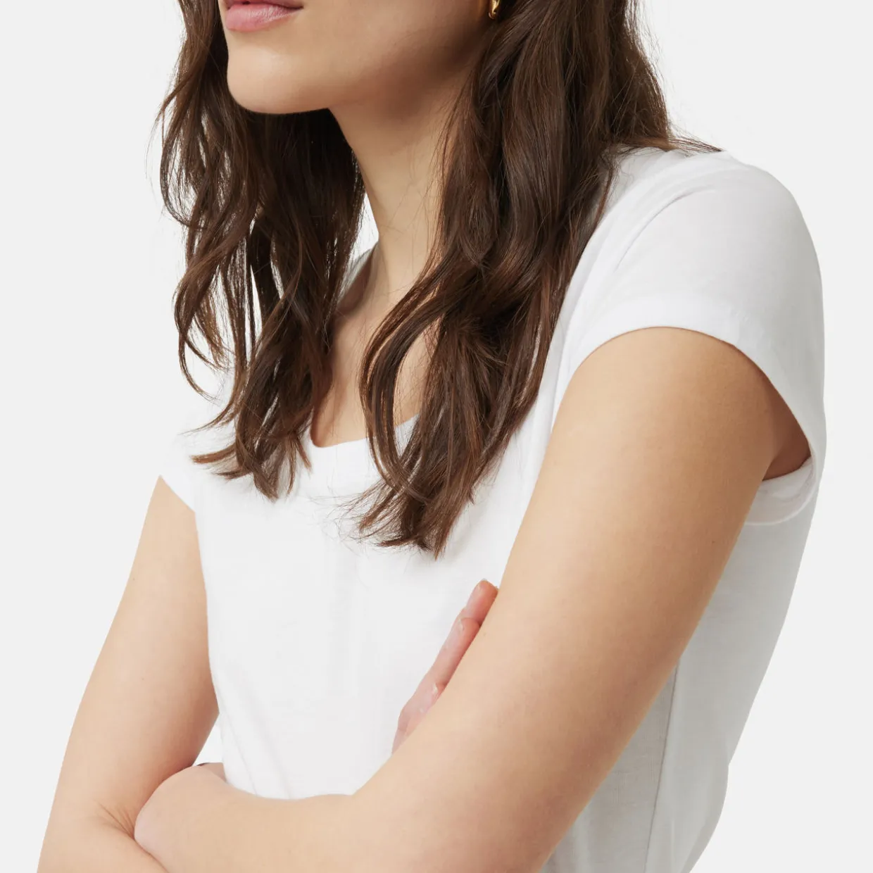 - Supima cotton, scoop neckline, straight silhouette, short sleeves