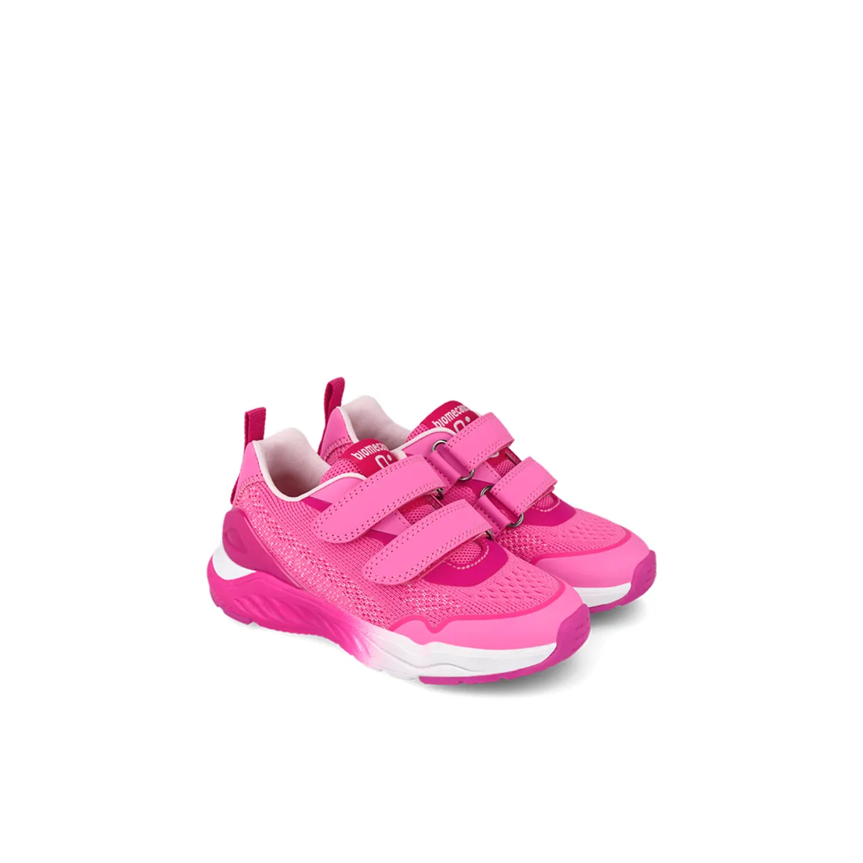 - Double straps, tape and loop fastenings, round toe, brand logo details, mixed panelling, textile upper detailing, gradient-finish sole, heel pull tab