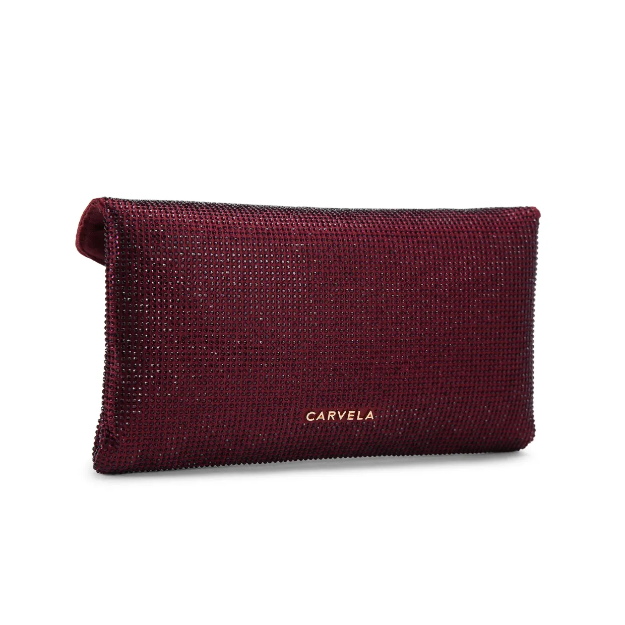 - Flap closure, envelope silhouette, rear logo branding, detachable chain strap, gold-tone hardware, satin finish, crystal embellished design
