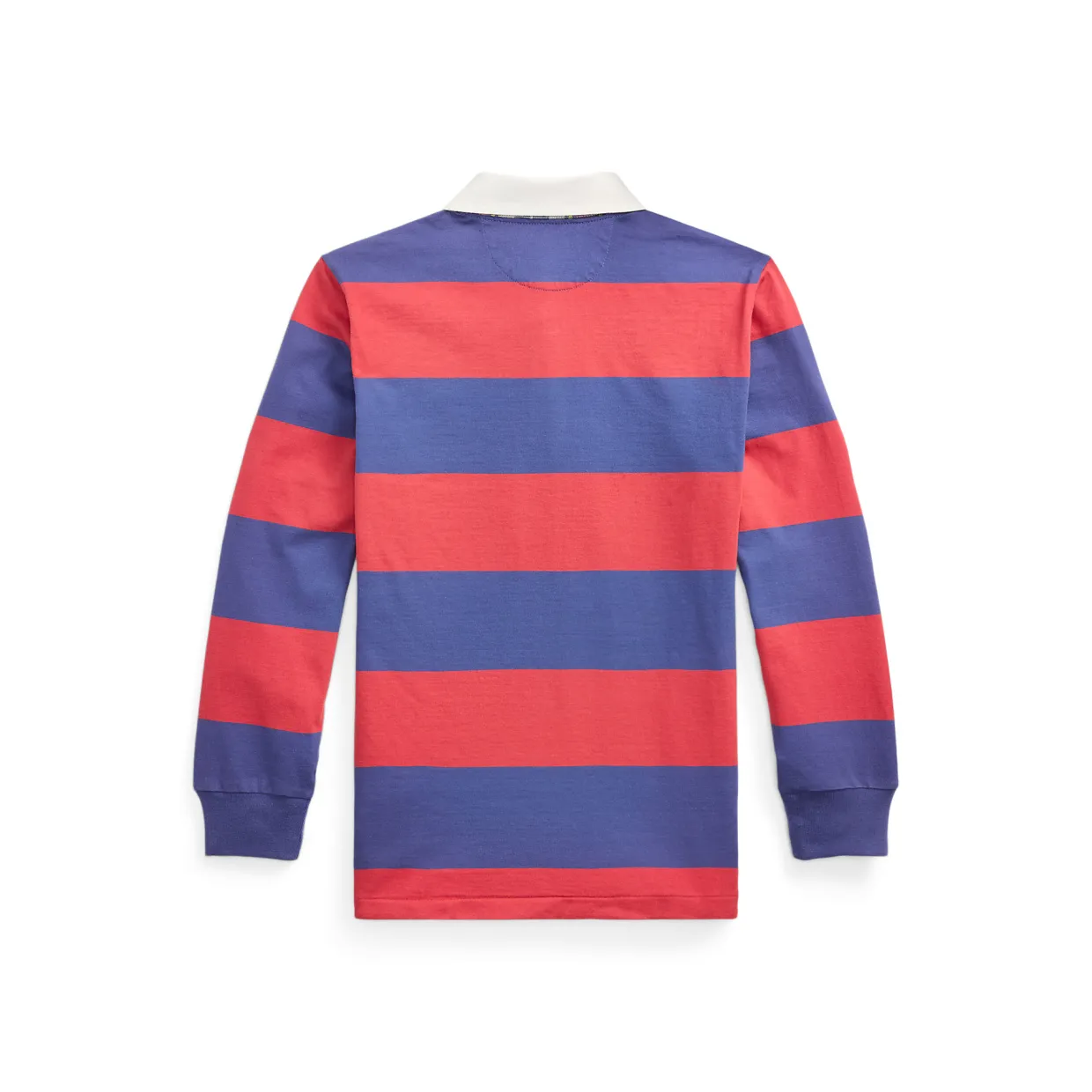 - Rugby style, signature logo crest embroidery, plaid undercollar, washed fabric finish, soft feel, twill rugby collar, three-button rugby placket, rubber-finished buttons, long sleeves, ribbed cuffs