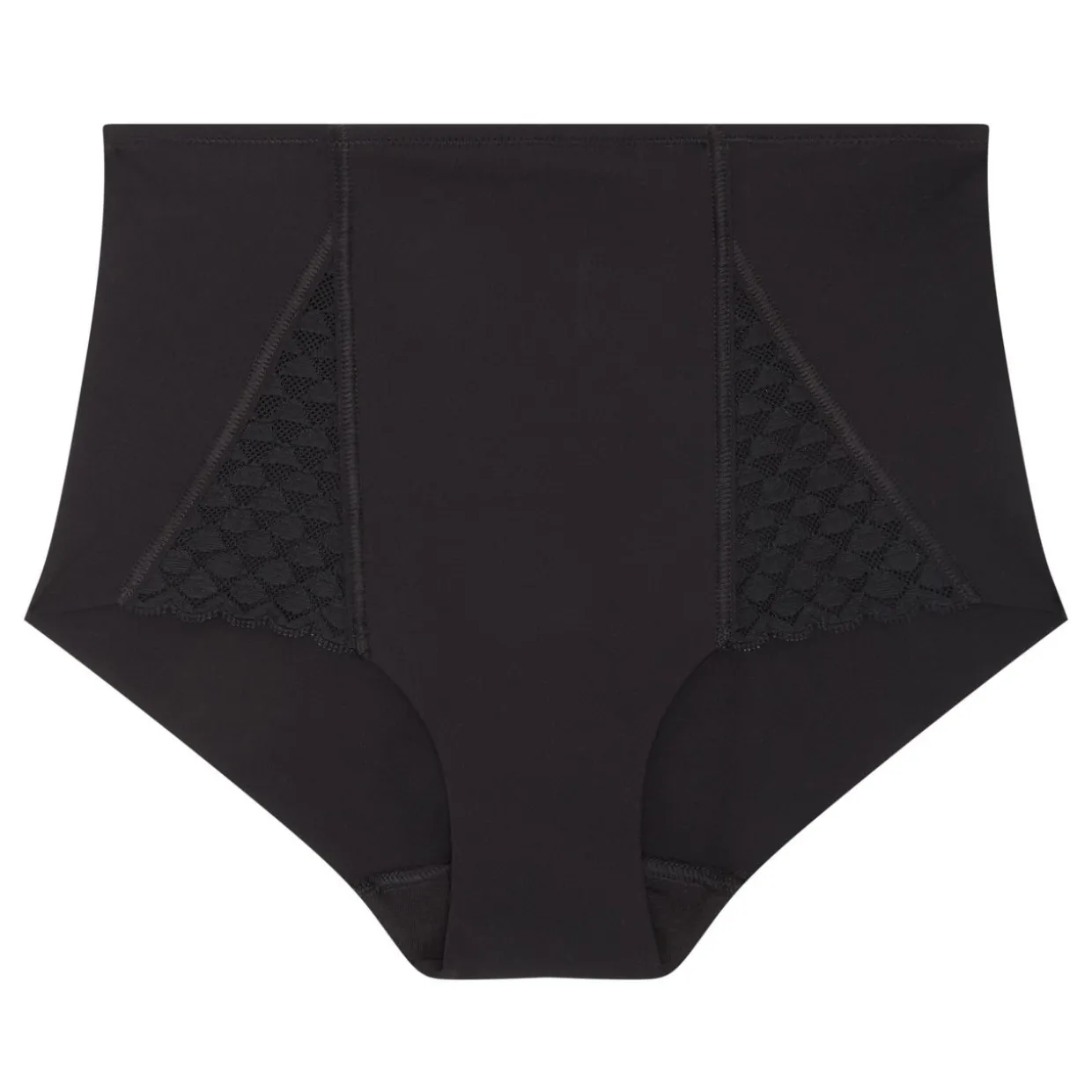 - High-rise, lace and mesh detailing, smoothing, seamless, elasticated waistband.