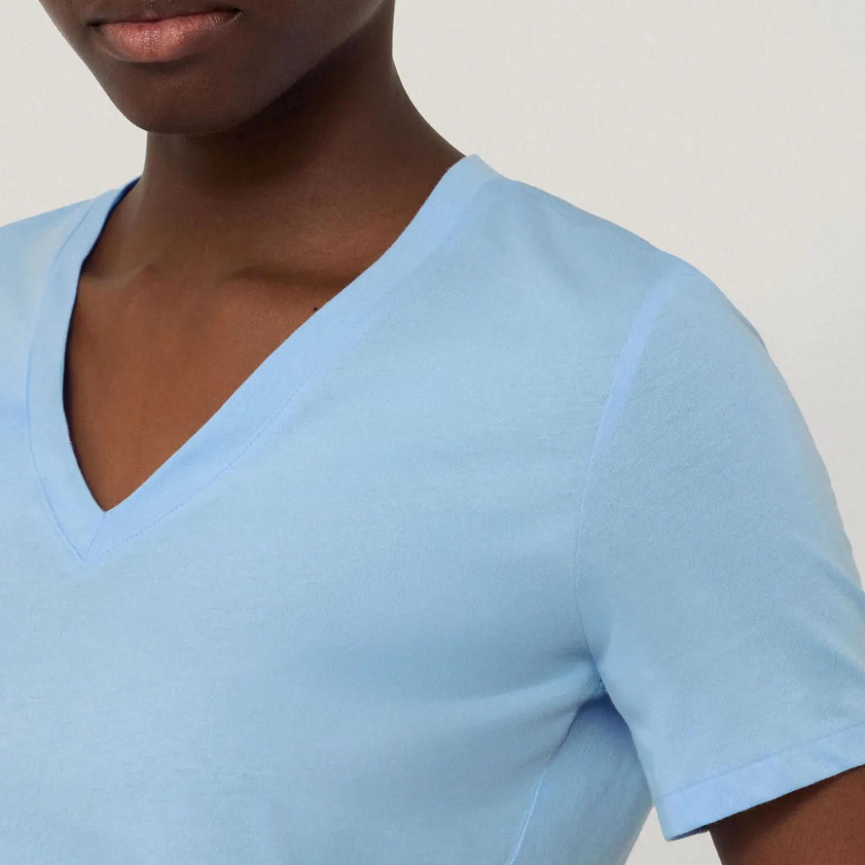 - V-neck, Supima cotton, short sleeves