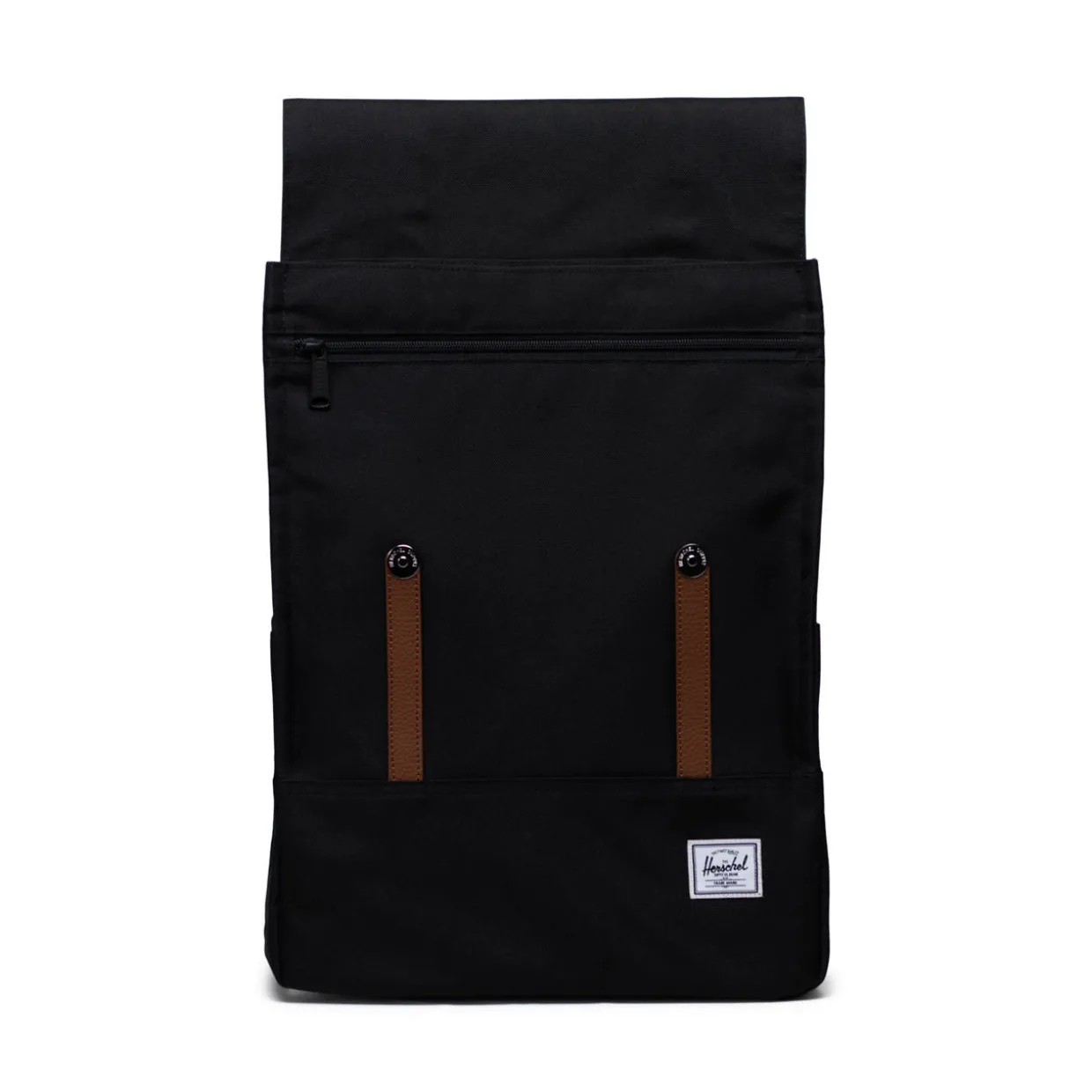 - Magnetic strap closure, adjustable EVA-padded shoulder straps, water bottle pocket expands to fit different sizes, side storage sleeve for quick-reach items, hidden zippered storage sleeve, Put Yourself Out There™ internal label, Herschel Supply DNA shoulder tab, stripe DNA tab on interior