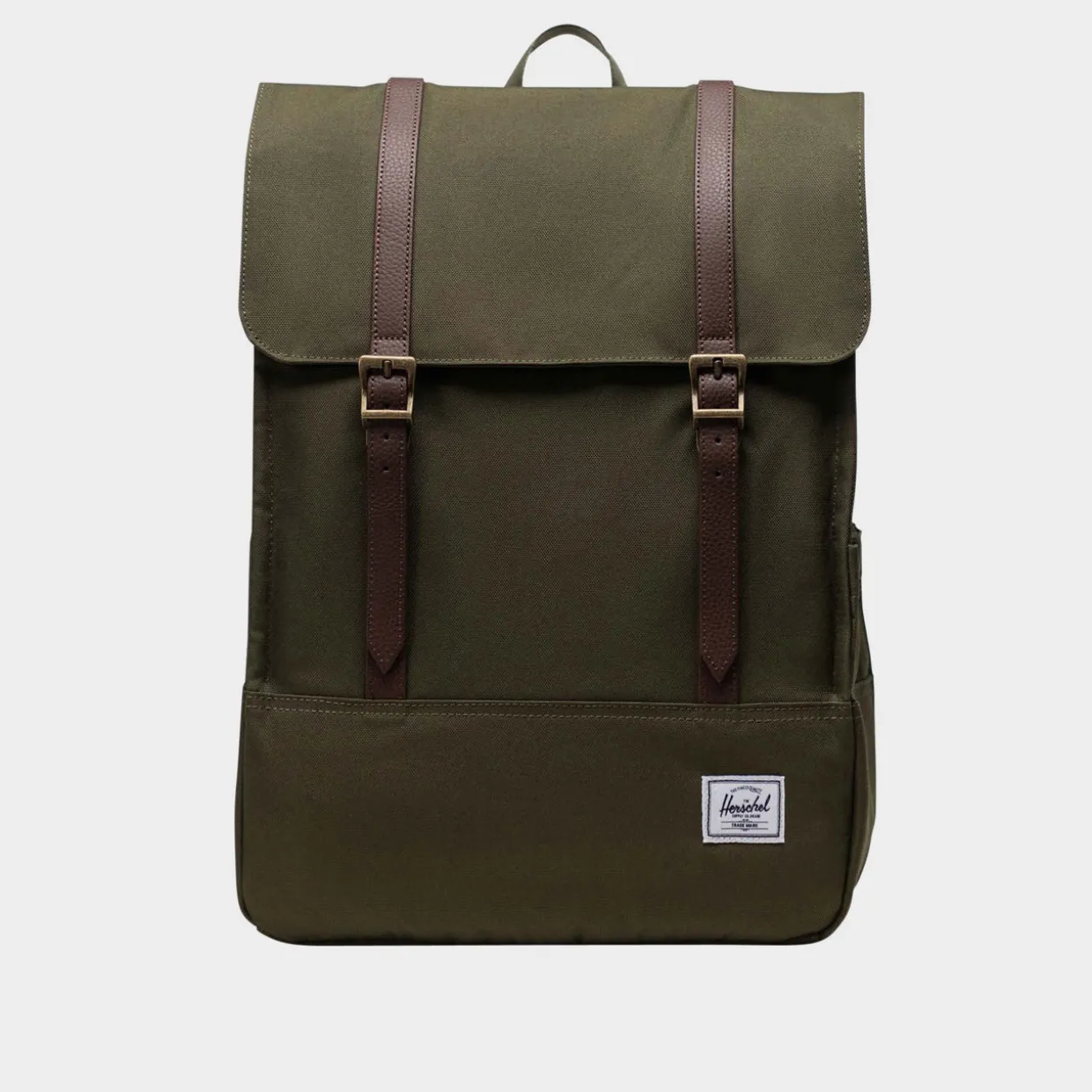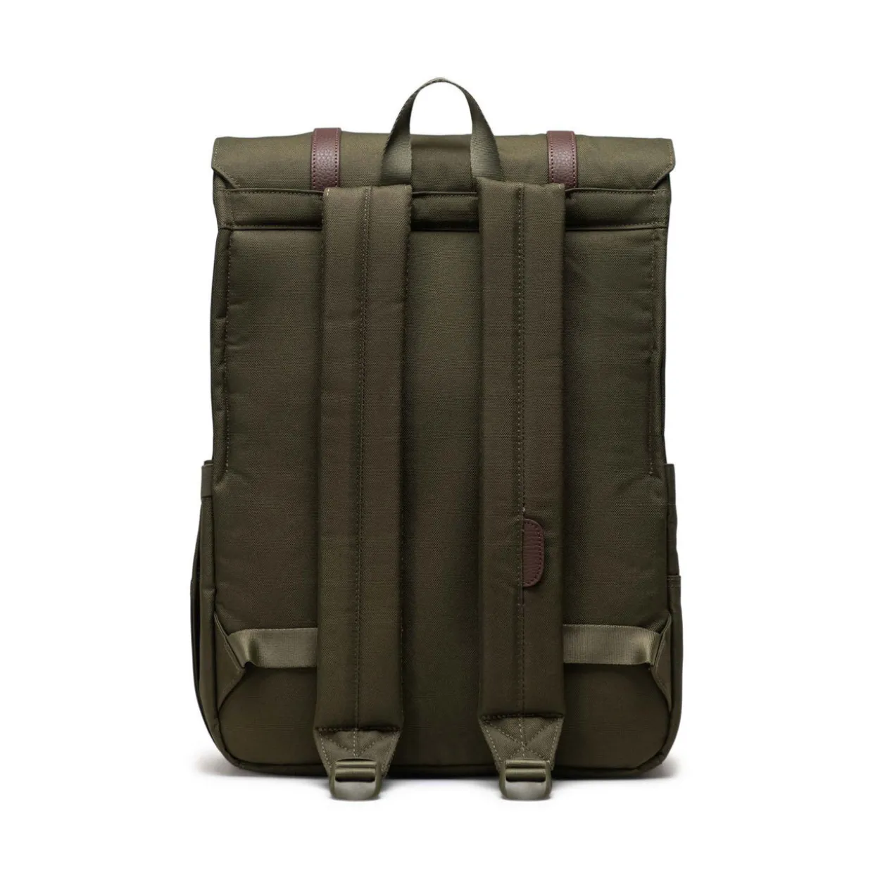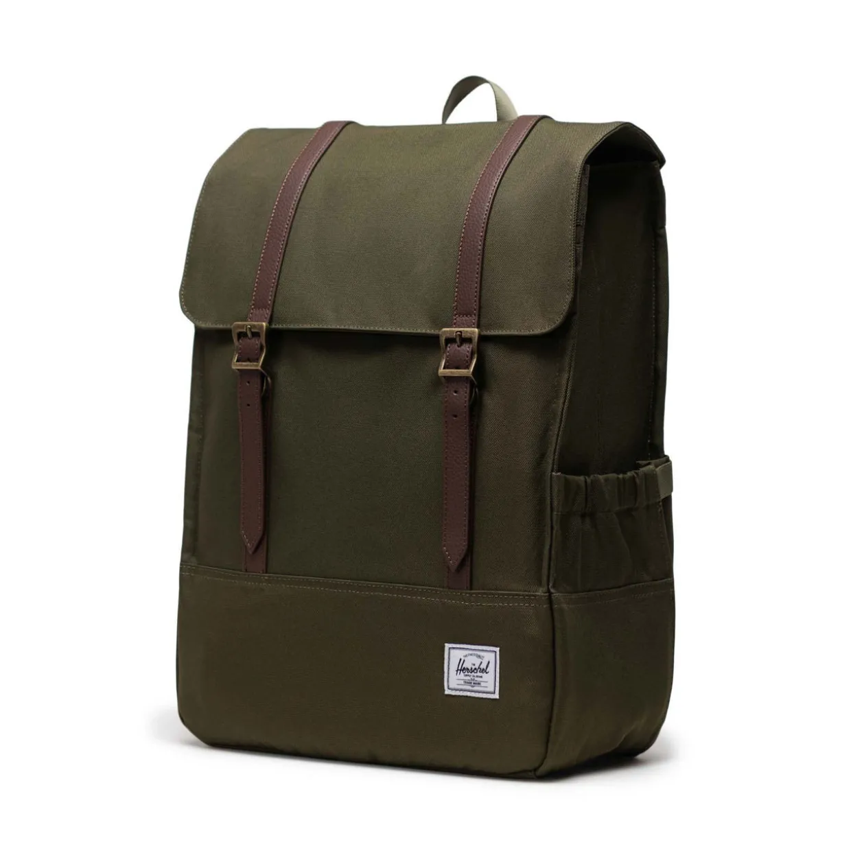 - EcoSystem™ 600D Fabric, tonal stripe EcoSystem™ Liner, padded floating laptop sleeve, fits 15/16-inch laptops, fold-over flap, magnetic strap fastening, adjustable EVA-padded shoulder straps, water bottle pocket, side storage sleeve, carry loop, hidden zippered storage sleeve, Put Yourself Out There™ Internal Label, Herschel Supply DNA shoulder tab, Internal Herschel Supply stripe DNA tab, brand logo details
